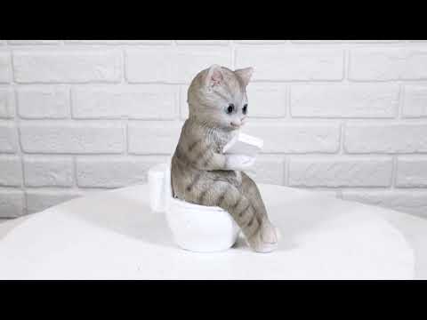 Shorthair Grey Cat Kitten Bookworm with Book Sitting On Toilet Potty Figurine