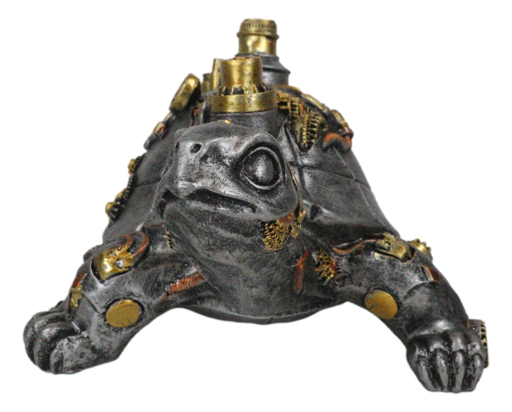 • This steampunk turtle figurine is made of designer composite resin, hand painted and polished. Color Tone may vary from pictures. Gears on this sculpture are painted on and are not functional.