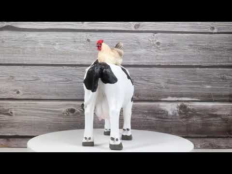 • This Western Vintage Barnyard Animals Chicken and Cow Figurine is 7.5" tall, 8.5" wide and 4.5" deep approximately. It weighs about 1.75 pounds. • This Western Vintage Barnyard Animals Chicken and Cow Figurine is made of polyresin, individually hand crafted, painted and polished. • Bring a touch of rustic charm to your space with our Country Farmhouse Barn Animals Figurine. This delightful piece features a Holstein cow adorned with classic black-and-white markings, carrying a cheerful chicken perched comfortably on its back. The intricate detailing and warm, earthy tones capture the essence of farm life and add a whimsical touch to any decor. • Props used in pictures are not included with the item.