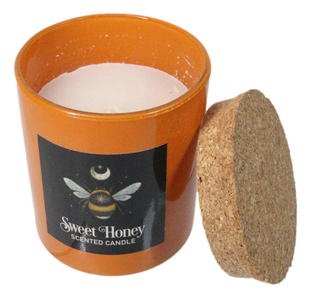 • This Dark Magical Forest Wiccan Candle is made of paraffin wax in various scents. • Approximate Burn Time 25 hours. Please practice caution when burning and never leave lit candle unattended. • Candle Dimensions: 3.5" high and 2.75" diameter. It weighs about 13 ounces. Made in India. • A Sweet Honey fragranced candle decorated with a mystical forest bee design and perfect for creating a magickal ambience. Glass holder with cork lid and beautifully presented in matching cardboard tube packaging. Vegan paraffin wax. • Props in photos are not included with the item.