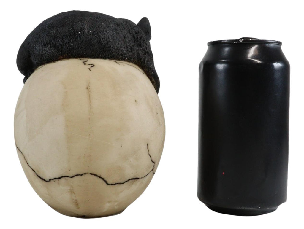 Ebros Witching Hour Black Mystical Cat Perching On Skull Macabre Figurine
