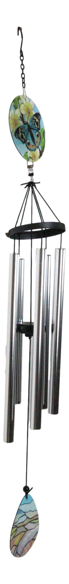 • This Colorful Art Glass Wind Chime is approximately 38" Tall from the base of the chime to the top of the hook. The round top crown is about 4.5" in diameter. The wind chime weighs about 1 pound. • This Colorful Art Glass Wind Chime is made of glass and steel metal rods. • Add a touch of elegance and charm to your outdoor space with the Blue Monarch Butterfly Colorful Art Glass Wind Chime. This beautiful piece showcases a radiant blue butterfly crafted from vibrant art glass, complemented by sleek metal rods that create soothing, melodic tones in the breeze. Perfect for gardens, patios, or balconies, it brings color, tranquility, and a sense of whimsy to any setting-a delightful gift for butterfly lovers and fans of artistic nature décor. • Props in photos are not included with the item.