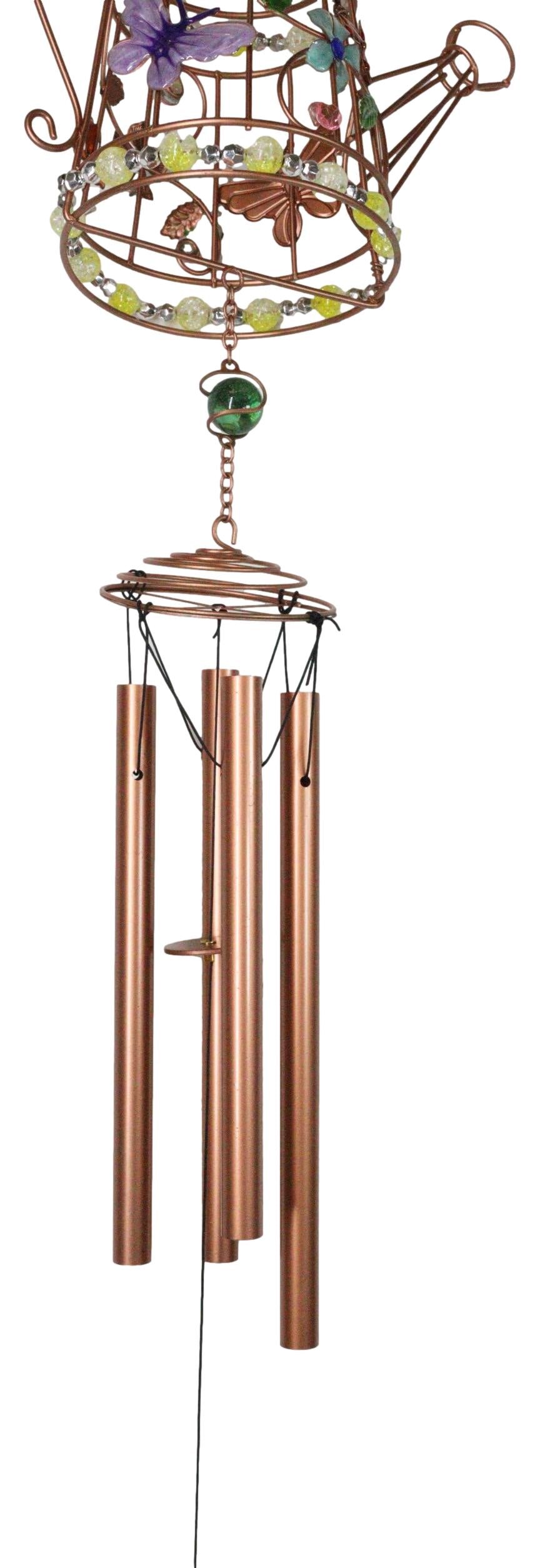 Monarch Butterflies On Garden Watering Can Art Glass Gemstones Metal Wind Chime