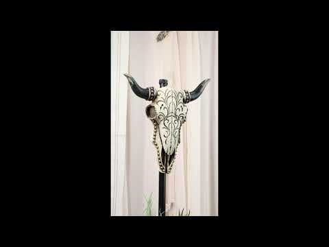 • This Floral Scroll Tribal Steer Skull Wall Decor is made of designer composite resin, hand painted and polished individually. Color Tone may vary slightly from pictures.