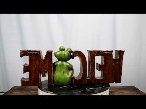 • Bring your home and patio to life with this whimsical sculpture. A happy toad is squeezed in the middle of the word WELCOME painted in faux wood finish. This adorable word art plaque can be hung on a wall or set on a surface as a sculptural accent.