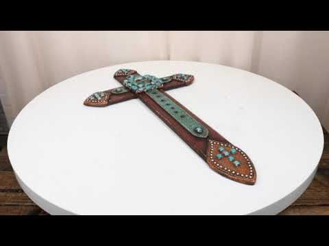 20" H Rustic Western Cowboy Faux Leather Turquoise Rocks Belt Buckle Wall Cross