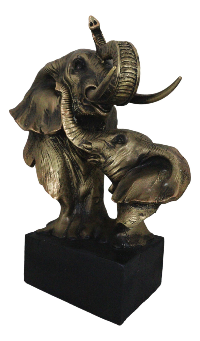 Ebros 9"H Safari Bush Elephant And Calf Family Bust With Trunks Up Auspicious Statue