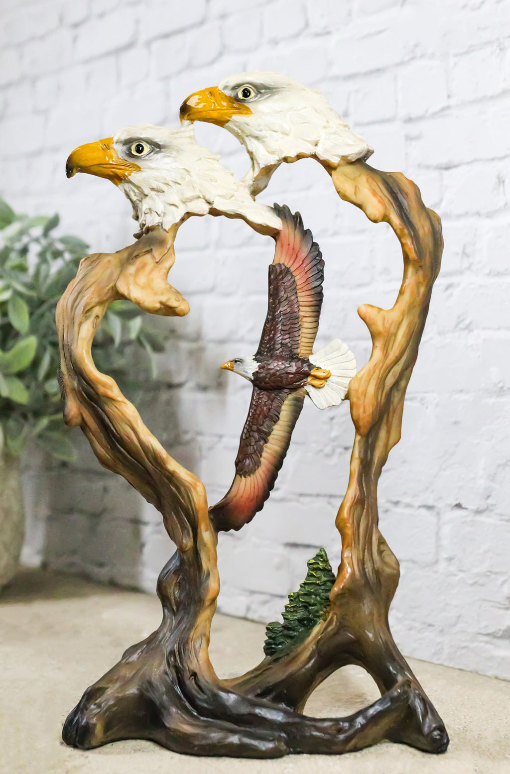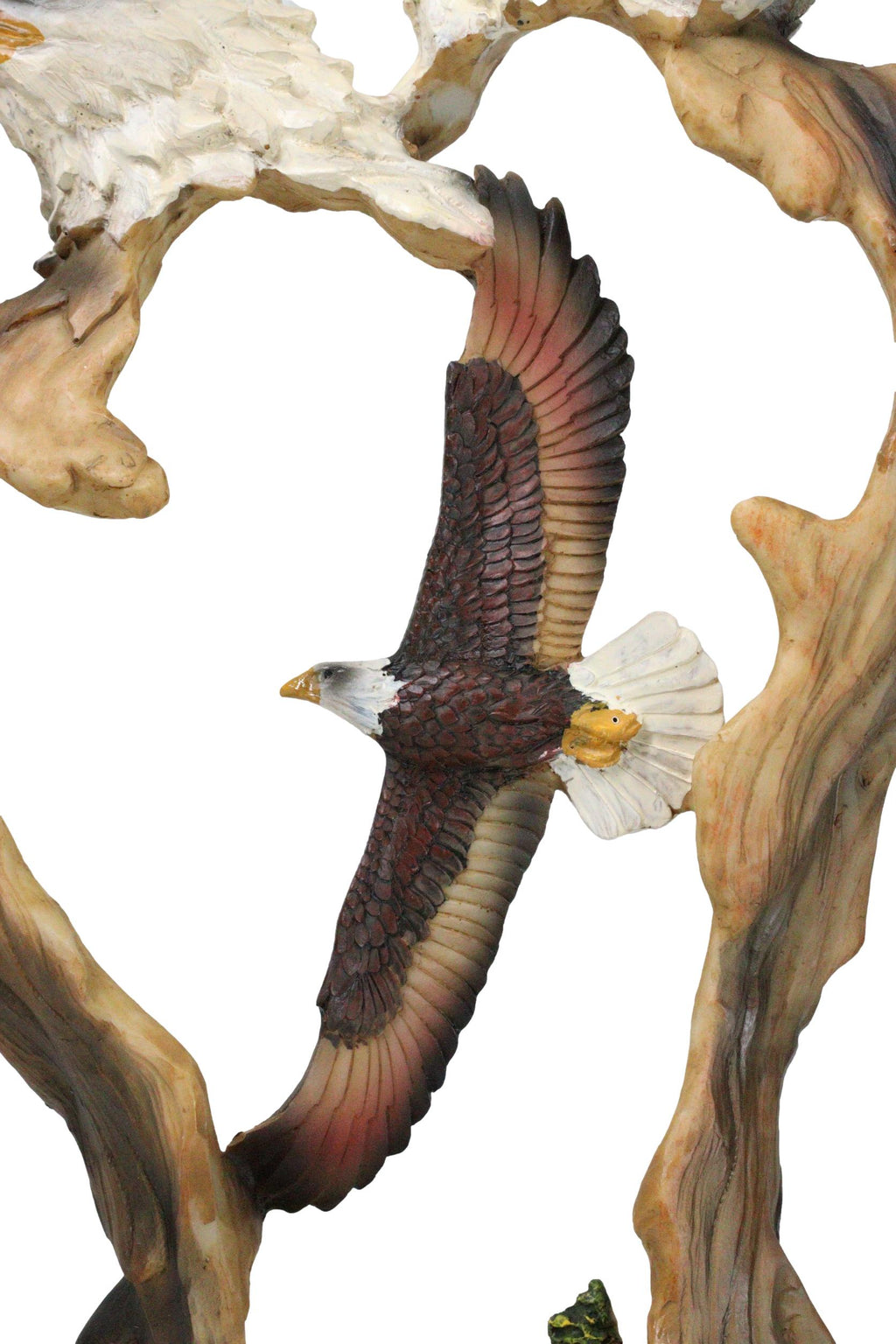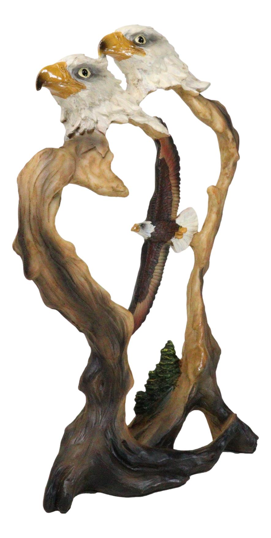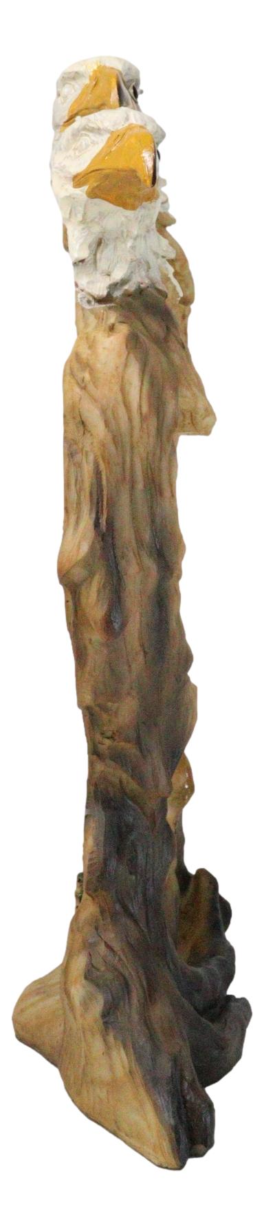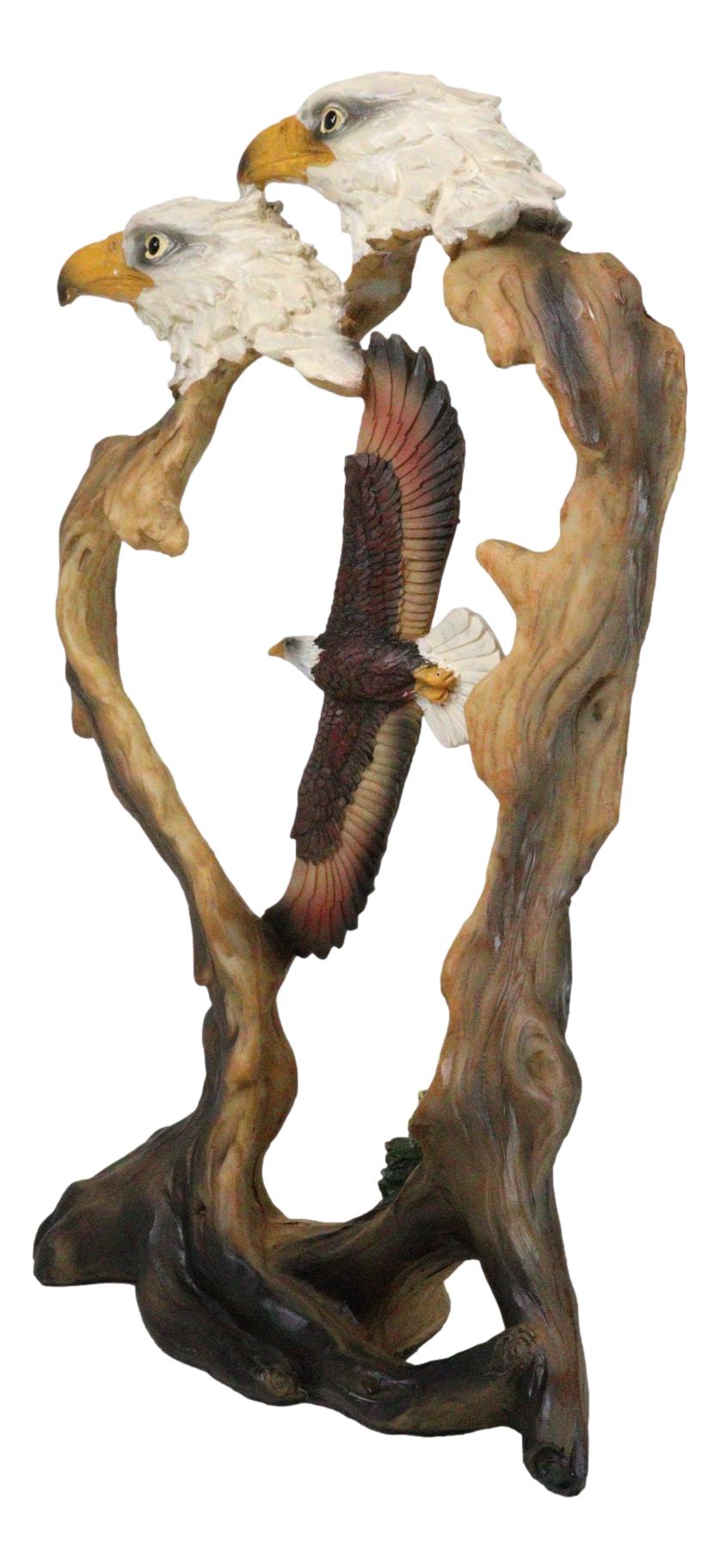 • This Beautiful Bald Eagle Symbolic Sculpture is 12" tall, 7.25" long and 3" deep approximately. It weighs about 1.25 pounds. • This Beautiful Bald Eagle Symbolic Sculpture is made of designer composite resin, hand painted and polished individually to resemble wood color. Color Tone may vary slightly from pictures. • Animal sculptures bring rustic, spiritual and nature's charm to your decore setup. We bring you these animal features in several different species, masterfully sculpted to resemble their real life counterparts. Set on a faux wood rustic style pedestal stand for your gallery display, the proud bald eagle bust will add patriotism and inspiration to your room. They are perfect for you desks, countertops, shelves or what have you! • Upheld for generations as the image of freedom, the American Bald Eagle comes to life in this impressive, finely detailed statue. Add style and patriotism to the table, bookshelf or desk with this unique sculpture. • Props in photos are not included with the item.