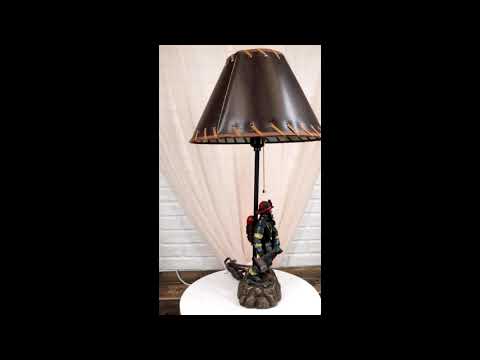 • This Fire Department Fire Fighter Table Lamp comes with the shade as pictured. Made of polyresin, hand painted and polished, the quality finish is superb! The shade is made of laced paper textured in leather-like finish. The top and bottom fringes of the shade has lace stripes.