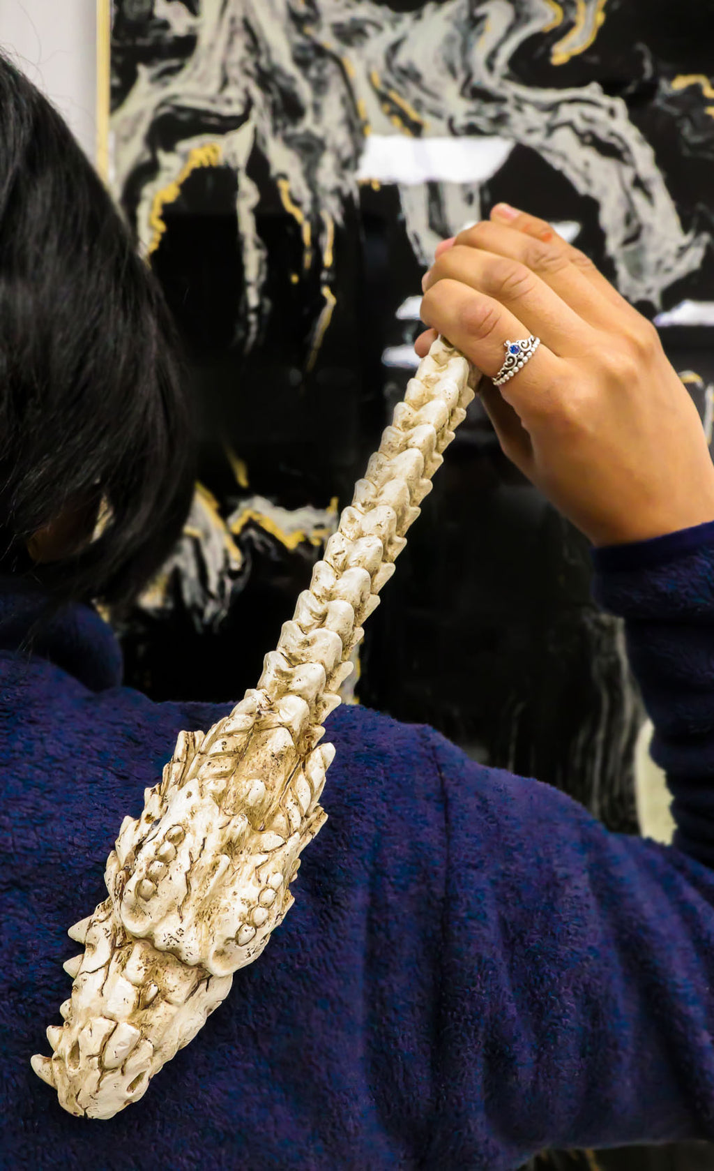 • This fossil skeleton dragon hand back scratcher is made of polyresin, hand painted and polished individually.