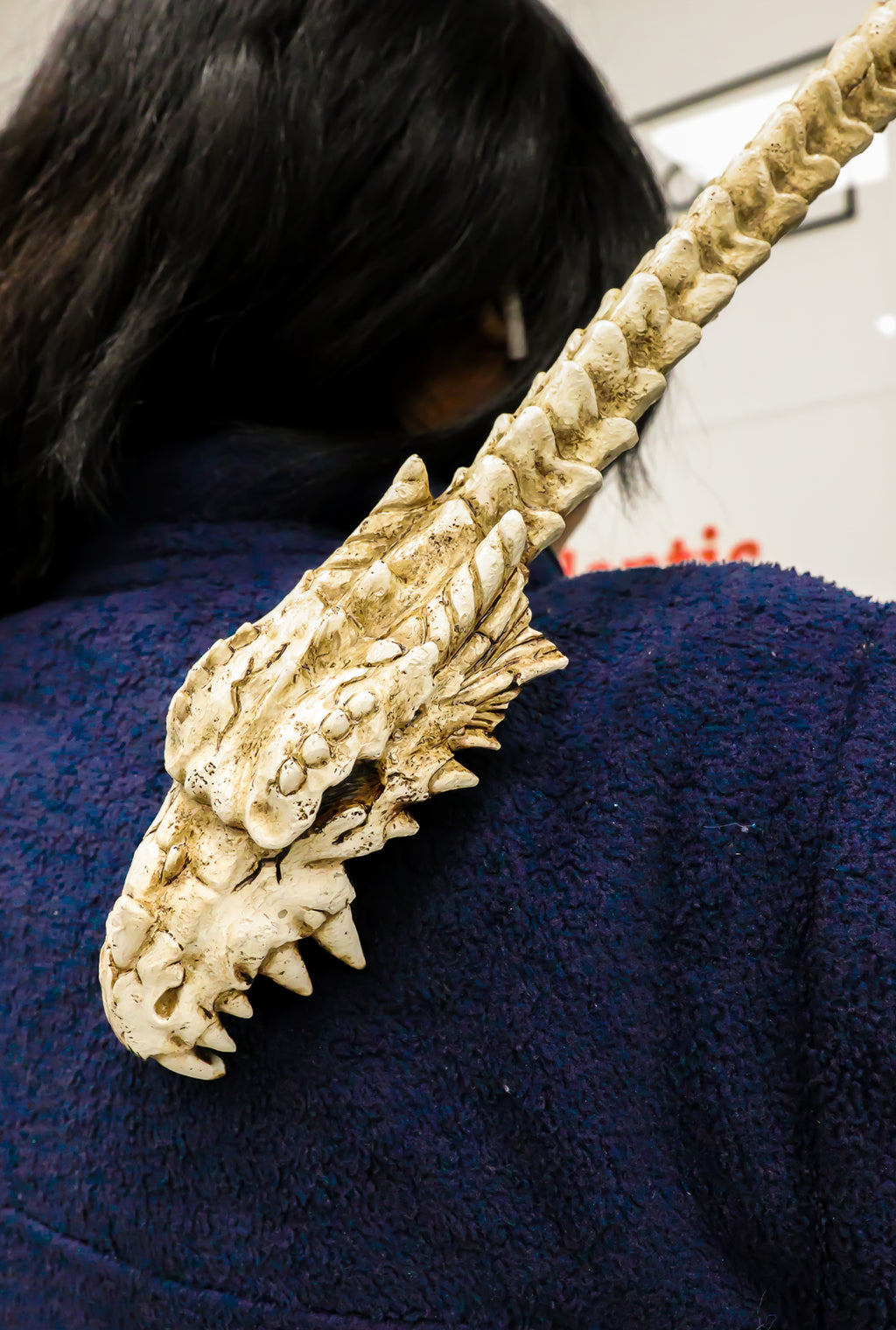 • When you want a bizarre way to scratch your back or you need to get a macabre novelty gift for a friend, be sure to get this dragon skeleton back scratcher. With an antiqued bone finish, this series of dragon vertebrae makes up the handle of the scratcher. The head of the scratcher looks like the top half of a dragon skull. It has long irregular 'sharp' teeth, perfect for scratching your back.