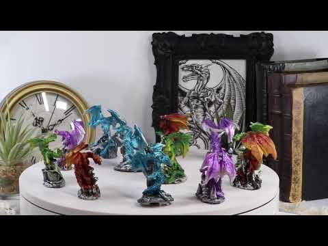 • Anyone who sees these ferocious dragons will just have to take a double dig! All poised differently standing on rock outcroppings, these dragons each have their own characterized looks and demeanor! The bright metallic colors also bring out the best features of the miniature dragons.
