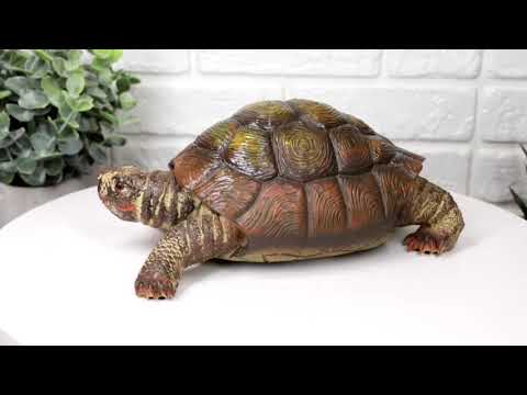• This Realistic Tortoise figurine stands at 3.75" tall, 6.5" Wide and 5" deep approximately. The sculpture weighs about 13 ounces.