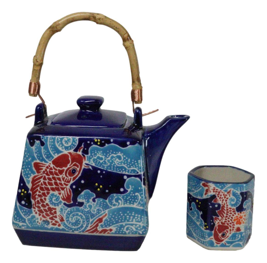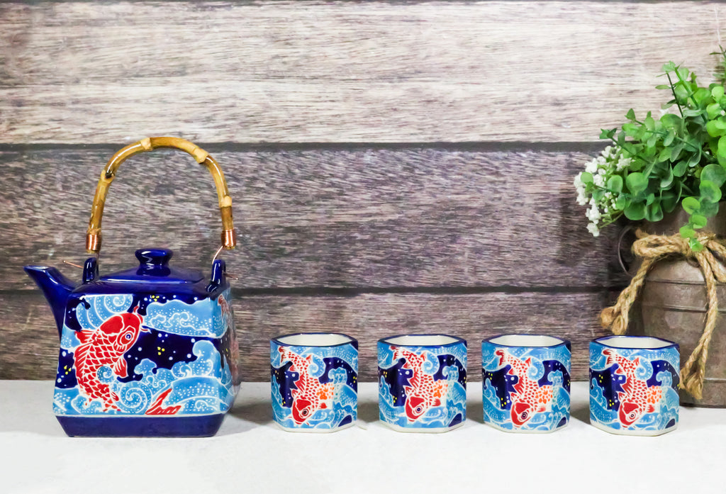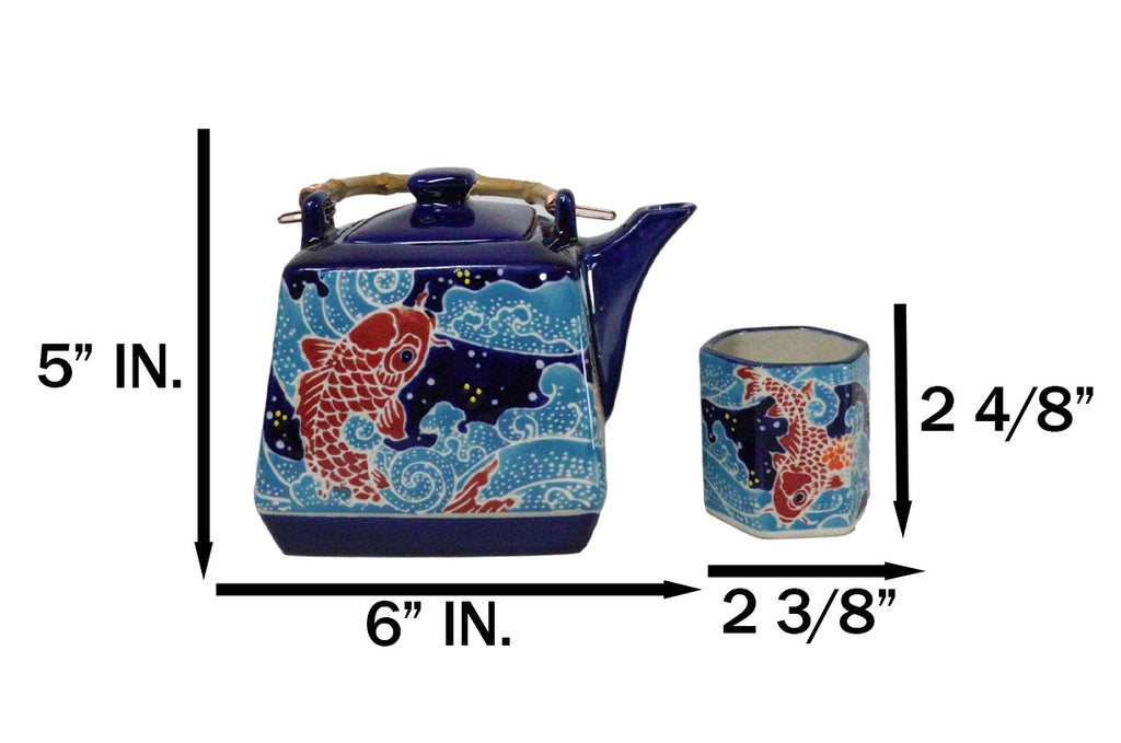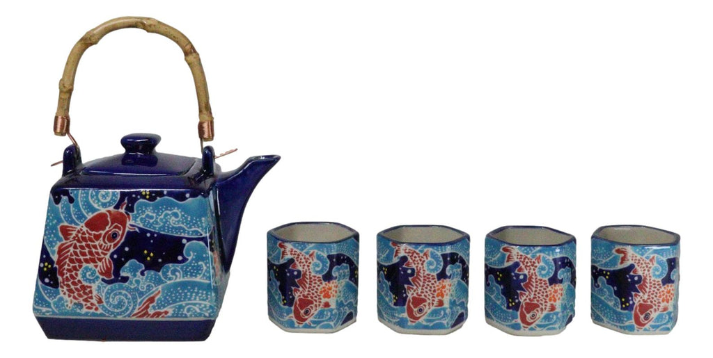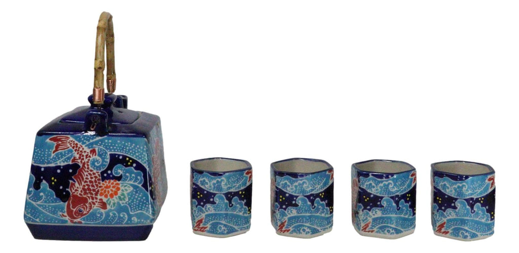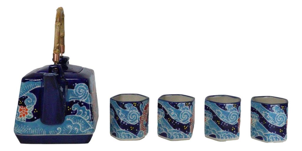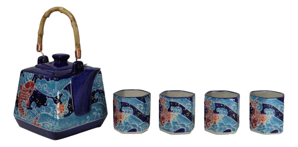 • This beautiful oriental porcelain tea pot set serves four people, containing 1 teapot(20oz) with bamboo handle and 4 tea cups packaged in a set box. The teapot comes with a stainless steel strainer. Dishwasher safe, remove bamboo handle. • Tea pot measurements: 5"H by 6"L by 4.5" W approximately, 20 fluid ounces. Tea Cups: 2.5"H, 2.25" wide and 2.25" deep . The teacup each holds 5 oz. • Our traditionally crafted porcelains are made of the highest quality porcelain available and fired at a high temperature to maximize the strength of the porcelain, making them superior to other ceramics in the market. Our porcelains are more resistant to cracks, stains, and scratches. Our porcelain is food safe and contain no lead or cadmium. • Whether you are fixing to share a pot of tea with your best friend or looking for an exotic classy oriental decoration for your home, this tea pot set will be a perfect choice!!!