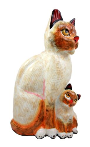 • This cat is made of Albesia wood, hand painted and polished individually. Because each figurine is hand carved (handicraft) and crafted out of natural wood, some variations in design and finish are a norm. • The figurine measures approximately 12" tall, 7" long and 5" deep. • Balikraft is the benchmark brand of quality hand carved wood figurines in Indonesia. As the brand name implies, the figurines are individually hand carved in the remote villages all over Bali. Bali is a tourist haven, well known for their heavenly beaches, cultural dances, Hindu temples and more. Bali is home to Southeast Asia's most skilled wood artisans. Balinese artisans can literally carve specialty figurines with their eyes closed!! • This adorable figurine was hand carved out of albesia wood, dried in a furnace kiln before being polished and painted individually by our expert artisans. It will make perfect decoration to any desks, shelves or what have you!