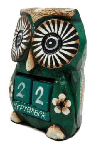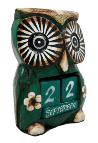 • This owl is made of Albesia wood, hand painted and polished individually. Because each figurine is hand carved (handicraft) and crafted out of natural wood, some variations in design and finish are a norm. • The owl measures approximately 4.5" tall, 3.25" wide and 2.75" deep. • Balikraft is the benchmark brand of quality hand carved wood figurines in Indonesia. As the brand name implies, the figurines are individually hand carved in the remote villages all over Bali. Bali is a tourist haven, well known for their heavenly beaches, cultural dances, Hindu temples and more. Bali is home to Southeast Asia's most skilled wood artisans. Balinese artisans can literally carve specialty figurines with their eyes closed!! • This owl is hand carved out of albesia wood, dried in a furnace kiln before being polished and painted individually by our expert artisans. The owl comes with wood blocks that contain writings of the 12 months of the year and numerical dice for the dates. It will make perfect decorations for any desks, shelves or what have you!