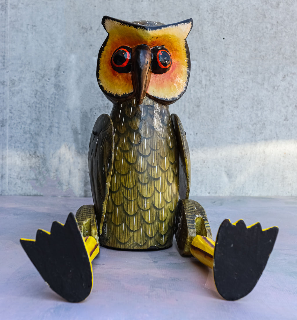 • This owl puppet is made of Albesia wood, hand painted and polished individually. Because each figurine is hand carved (handicraft) and crafted out of natural wood, some variations in design and finish are a norm.