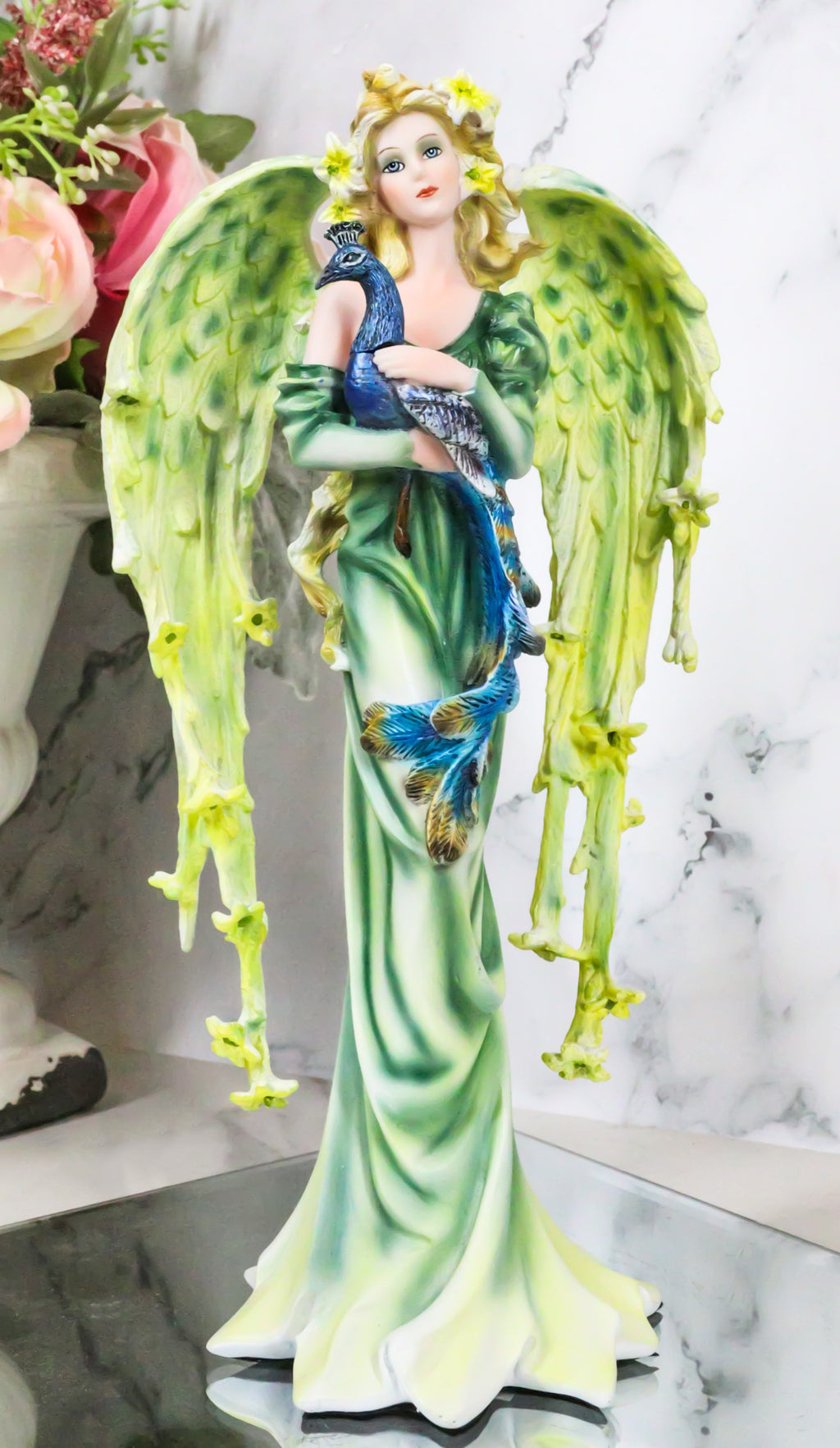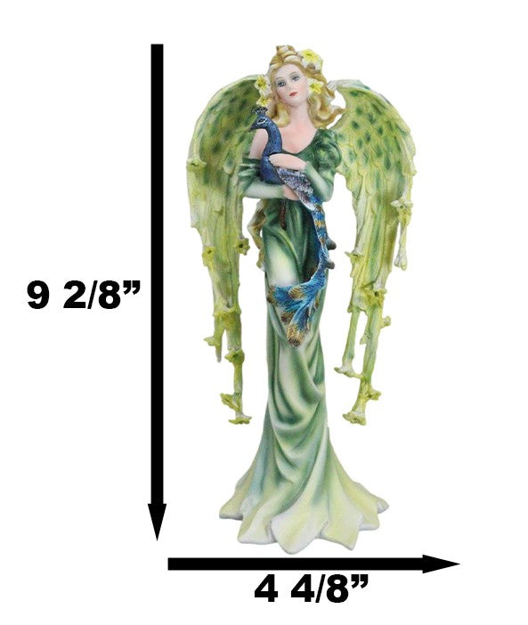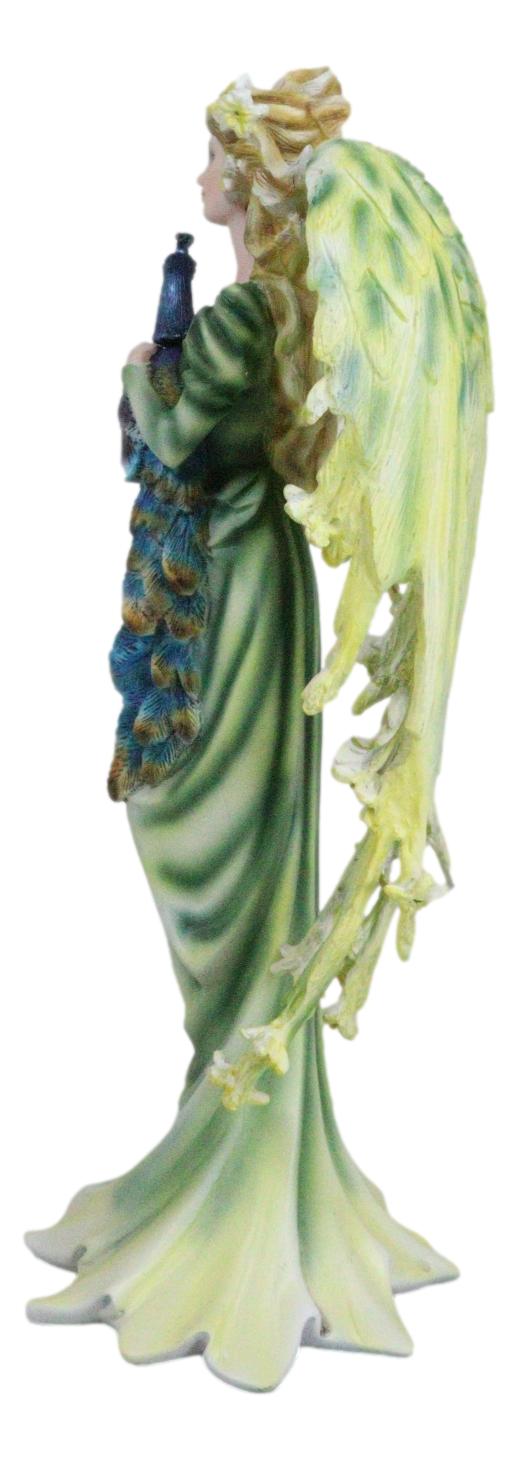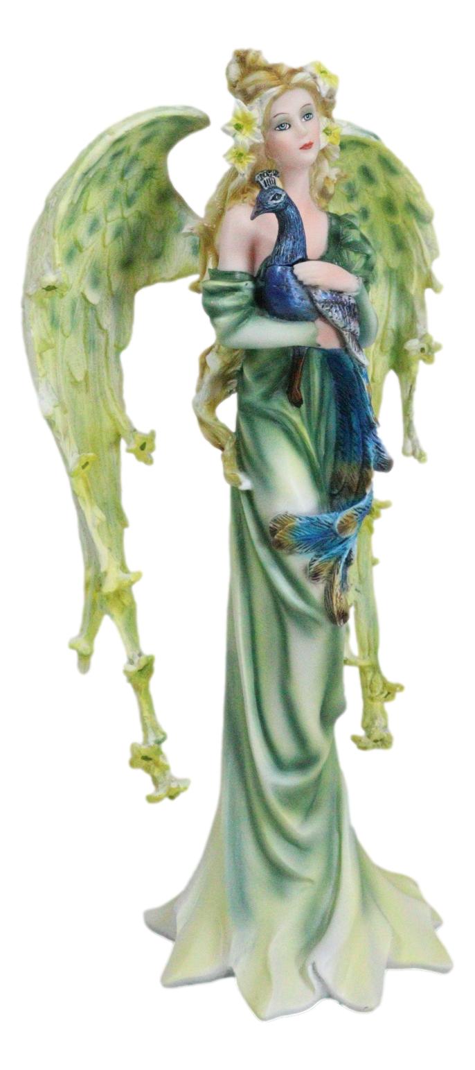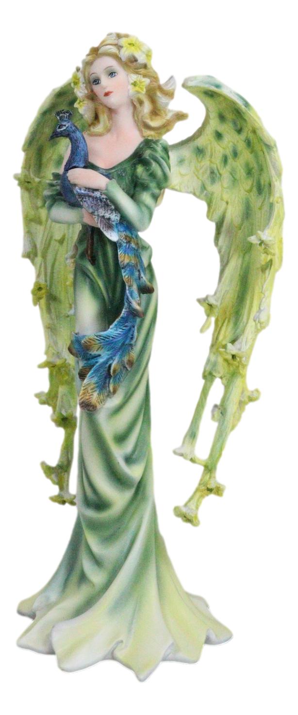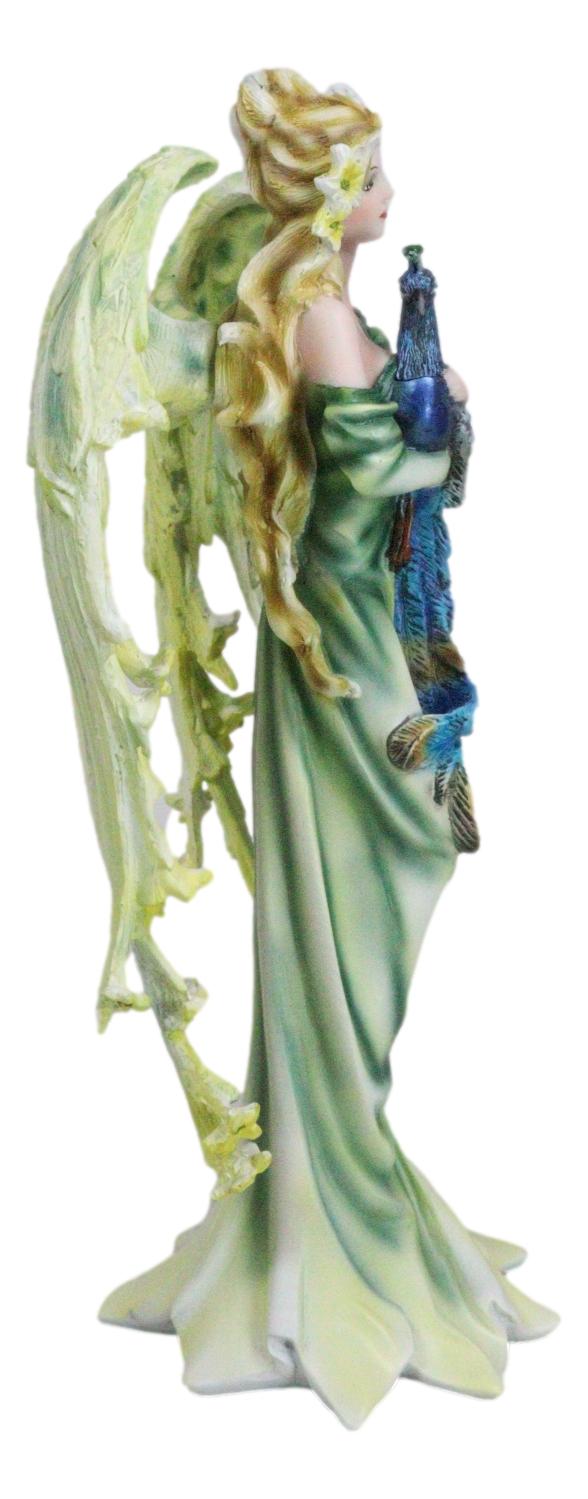 • This Fairy With Peacock Figurine measures 9.25" tall, 4.5" wide and 3.5" deep approximately. It weighs about 15 ounces. • This Fairy With Peacock Figurine is made of designer composite resin, hand painted and polished individually. • Immerse yourself in the enchanting world of fantasy with our Green Fairy adorned with Colorful Flowers, elegantly carrying a majestic Blue Peacock. This intricately crafted figurine captures the essence of magic and nature, featuring a whimsical fairy surrounded by vibrant flowers, her graceful presence enhanced by the stunning blue peacock she holds. The exquisite details and lively colors make it a captivating addition for fairy enthusiasts and collectors alike.