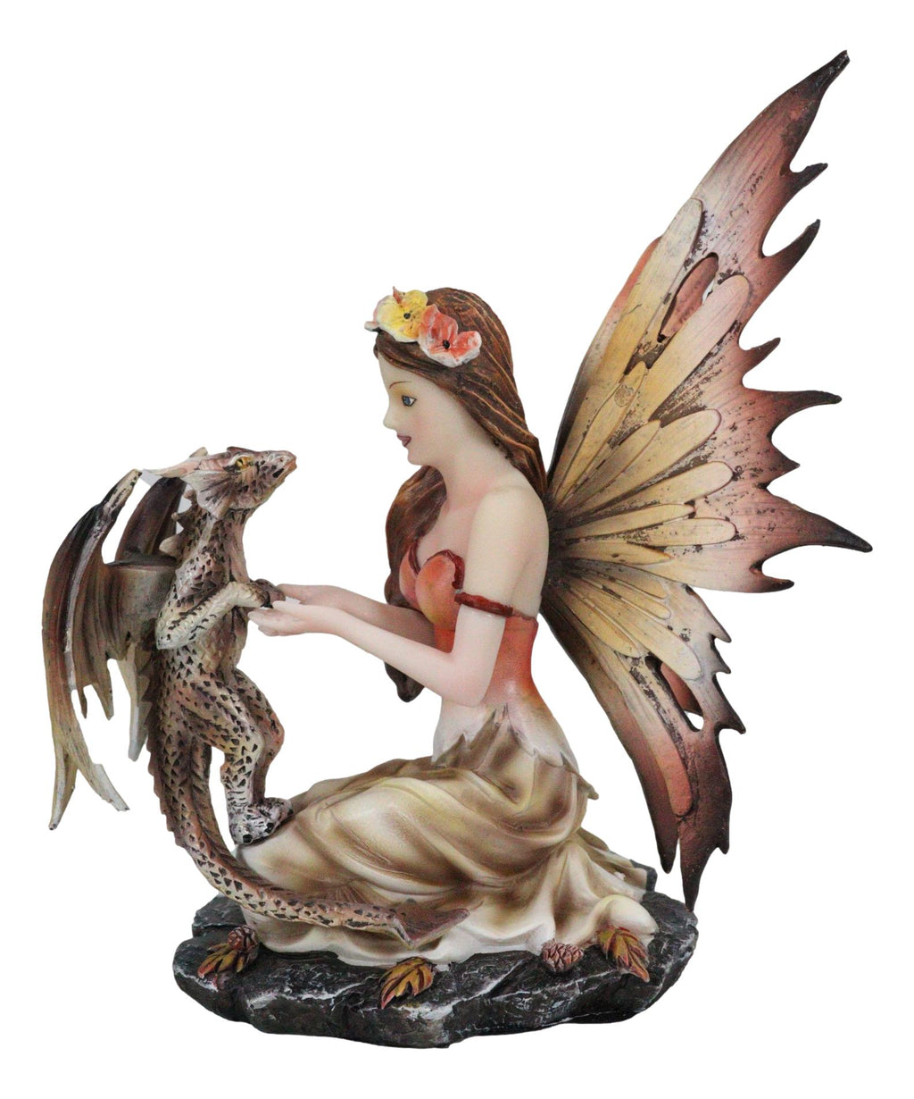 Ebros Beautiful Scarlet Fire Fairy Goddess With Spotted Dragon Figurine Fantasy Decor
