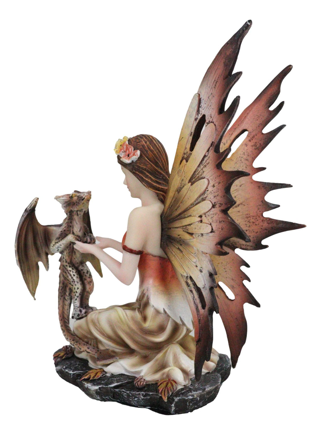 • This Scarlet Fairy With Pet Dragon is made of high quality designer resin, individually handpainted and polished. Because each piece is partially hand crafted, color tone may vary from pictures.