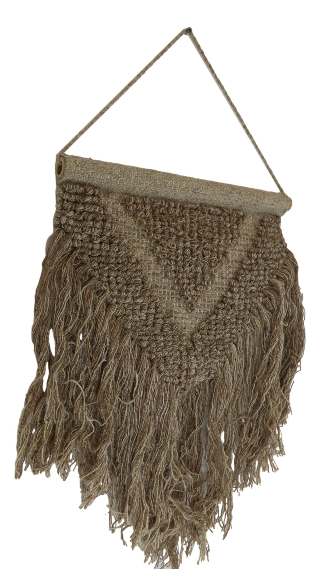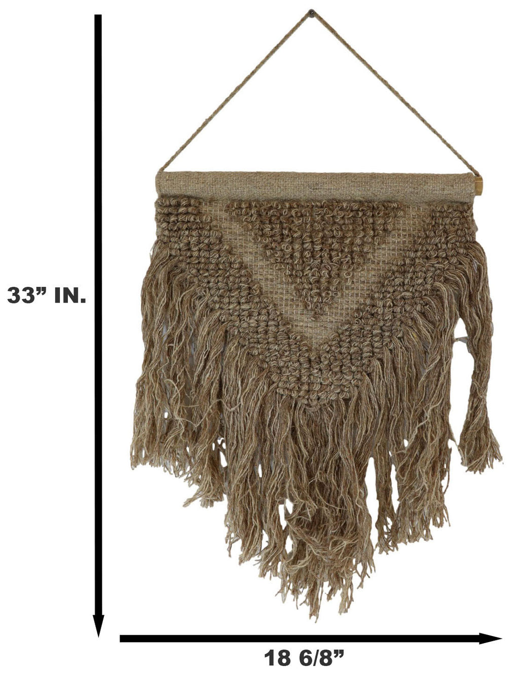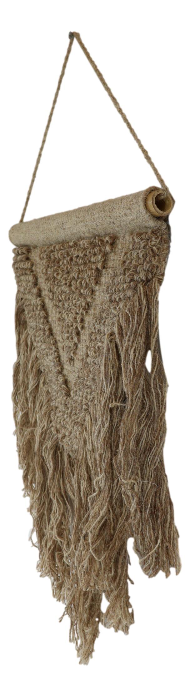 • Add a touch of vintage charm to your modern decor with this hand-woven Brown Wool And Cotton Wall Hanging Macrame Art. Expertly crafted by skilled artists, this unique piece will add a stunning accent to any wall, door, or window in your home. • Hand-woven with 100% cotton and wool material • The tapestry measures 33" High from the top of the hanging string to the bottom tassels. It is 18.75" wide. • This is an Ebros Gift exclusive collection.