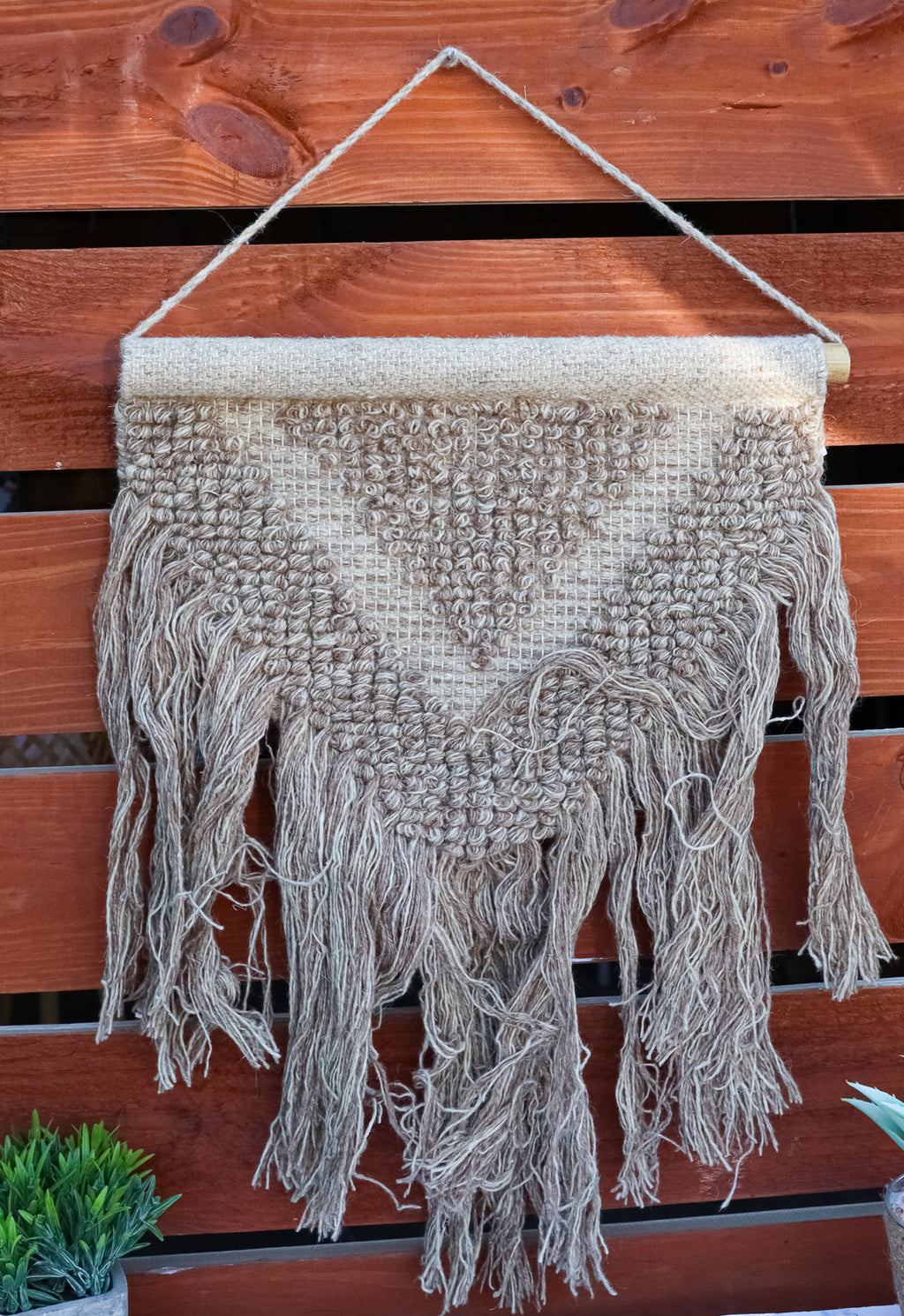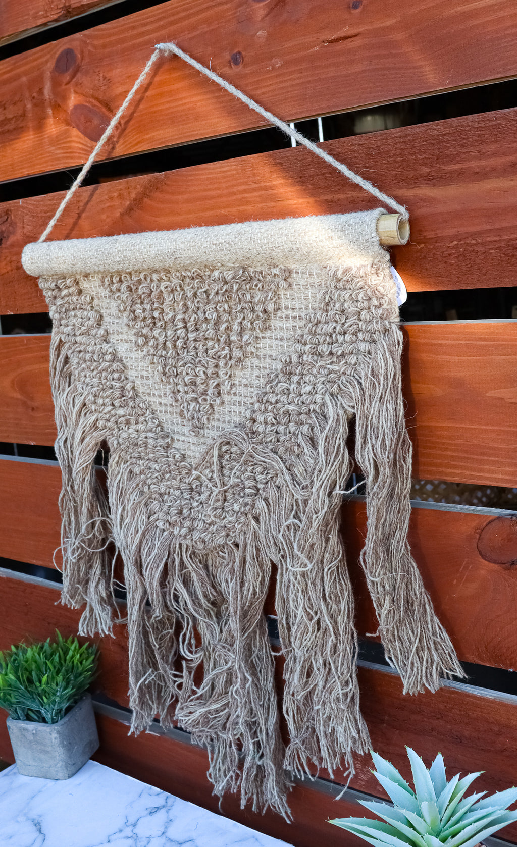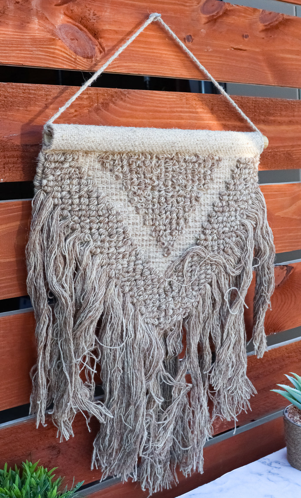 • Add a touch of vintage charm to your modern decor with this hand-woven Brown Wool And Cotton Wall Hanging Macrame Art. Expertly crafted by skilled artists, this unique piece will add a stunning accent to any wall, door, or window in your home. • Hand-woven with 100% cotton and wool material • The tapestry measures 33" High from the top of the hanging string to the bottom tassels. It is 18.75" wide. • This is an Ebros Gift exclusive collection.