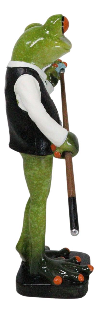 • This Billiards Pro Frog Toad Figurine is approximately 6.75" tall, 4.25" long and 2.25" deep. It weighs about 7 ounces. • This Billiards Pro Frog Toad Figurine is made of polyresin, hand painted and polished individually. Color Tone may vary slightly from pictures. • Elevate your decor with a touch of sophistication and whimsy with our Billiards Pro Green Frog Figurine. Dressed in a sharp bow tie and poised with precision, this charming green toad is applying chalk to the tip of a pool cue, ready for a game of billiards. The meticulous details and elegant attire capture the essence of a true billiards enthusiast with a playful twist. Perfect for game rooms, bars, or any space that appreciates a blend of class and humor. • Props in photos are not included with the item. They are meant to provide size perspective of the item.