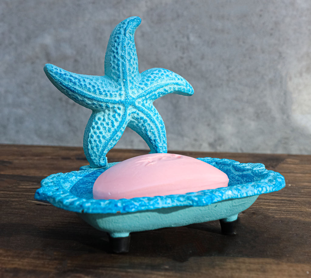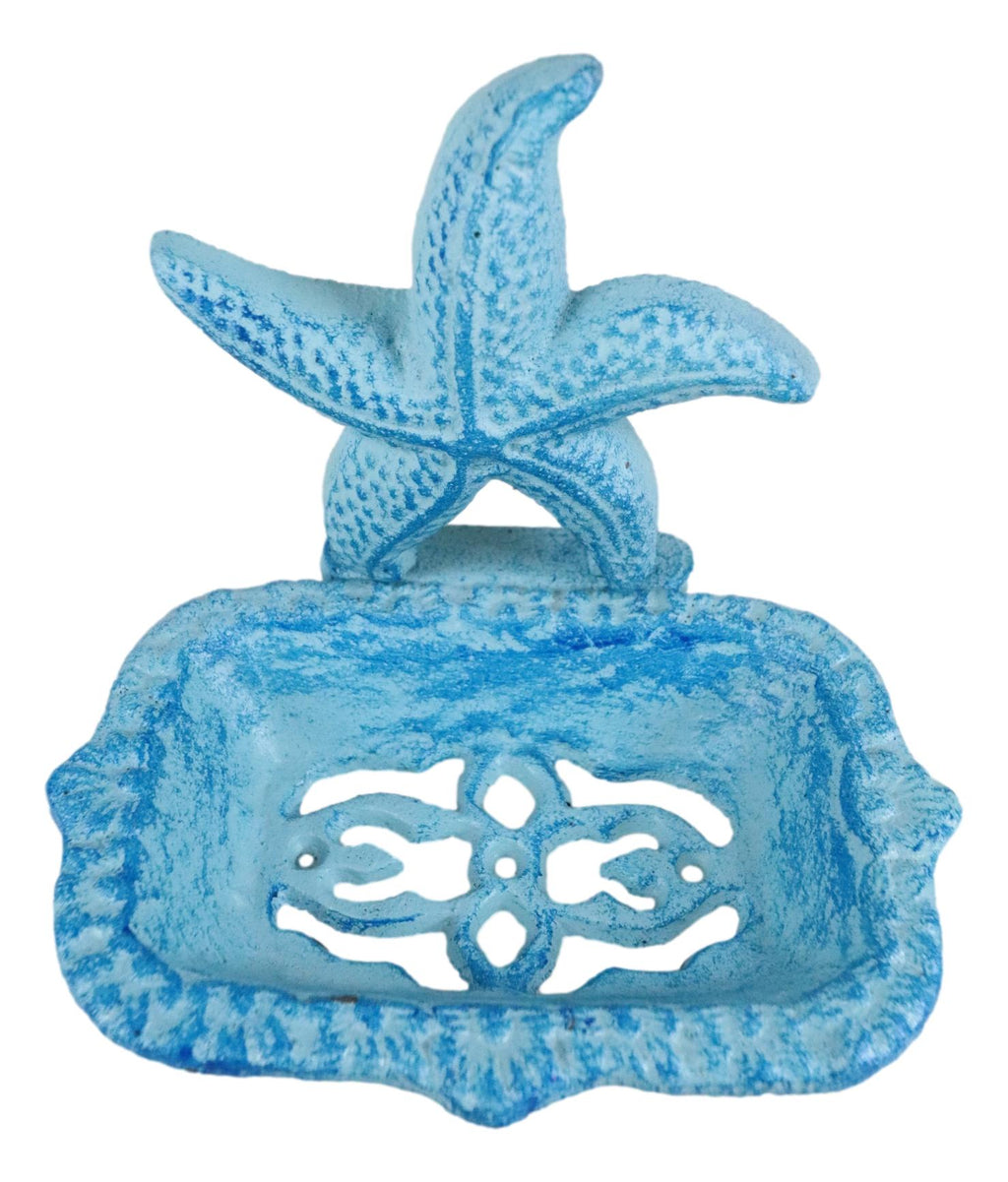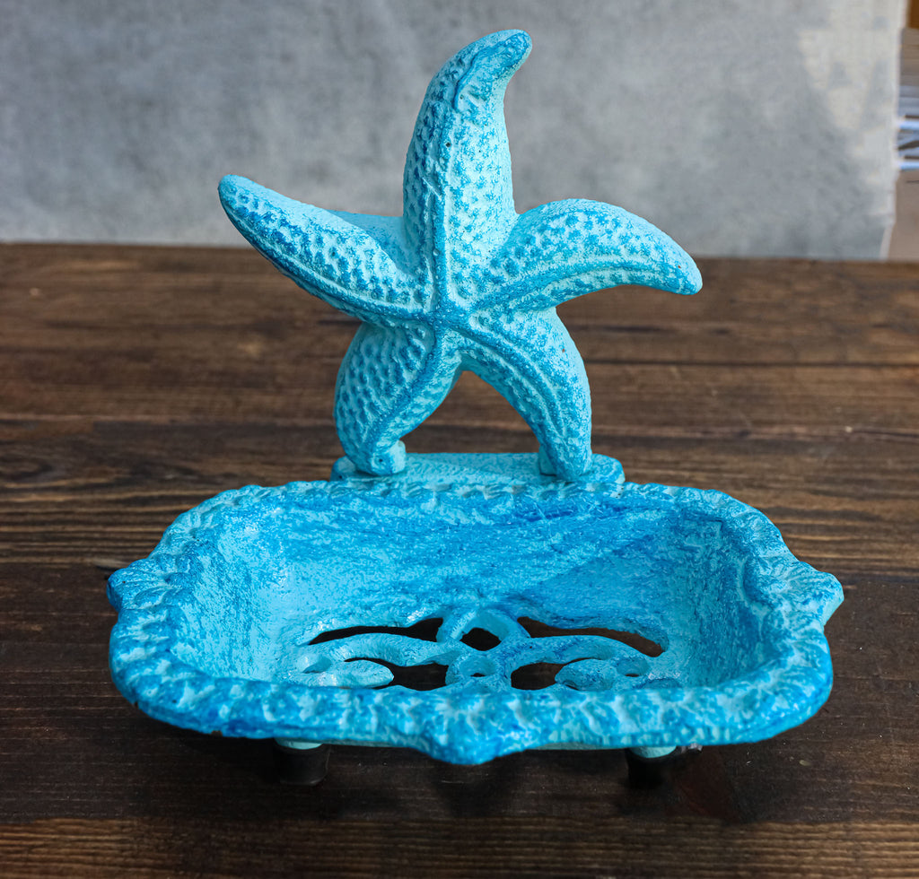 Cast Iron Marine Ocean Coastal Rustic Blue Starfish Sea Star Soap Dish Figurine