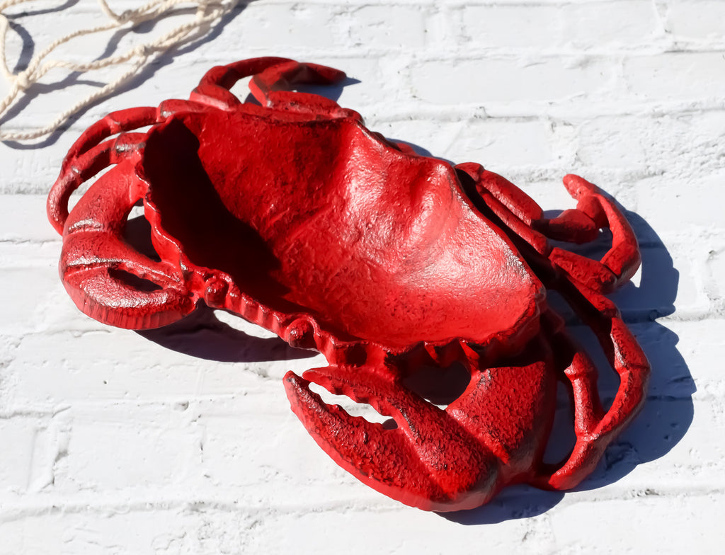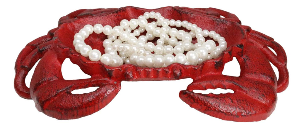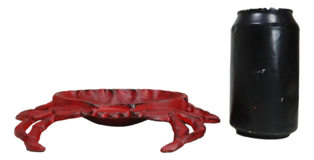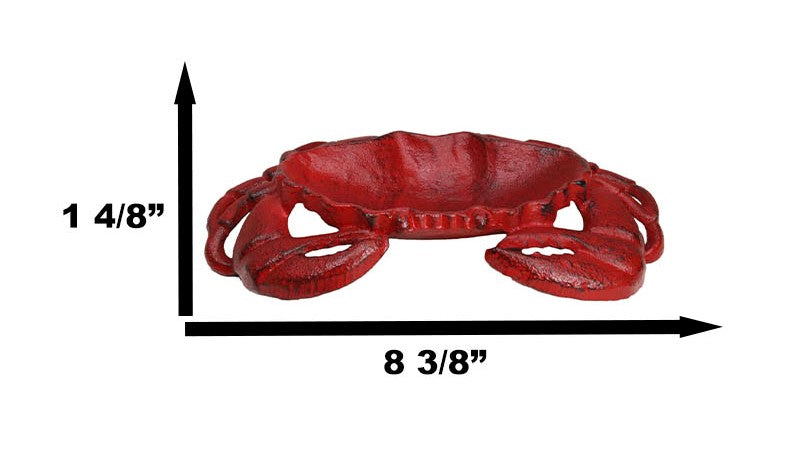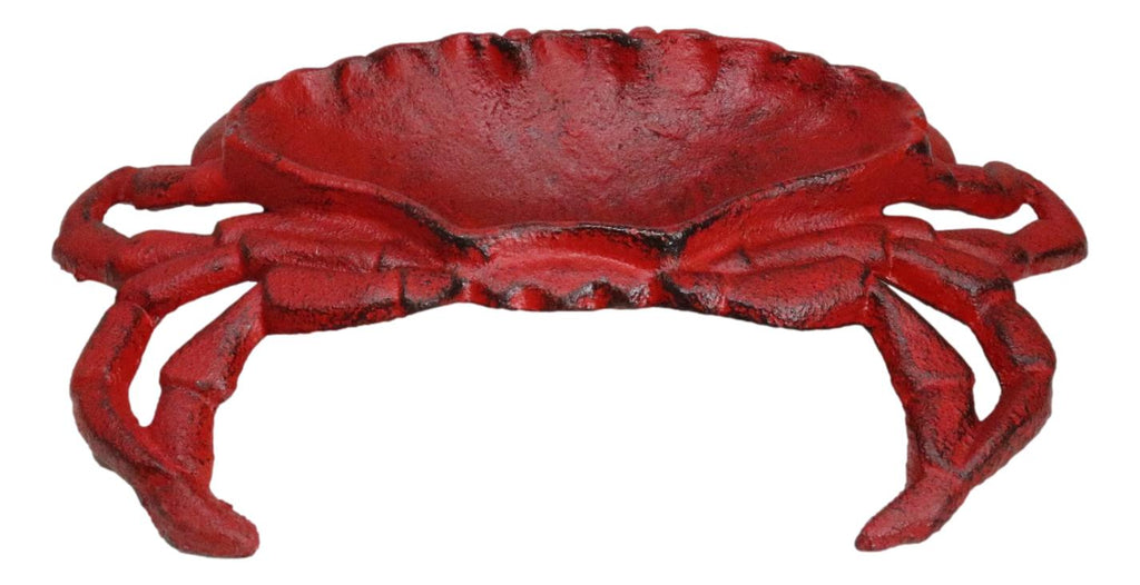 • This Whimsical Crab Tray Or Dish measures 1.5" High, 8.25" Long and 6" Wide approximately. It weighs about 2 pounds. • This Whimsical Crab Tray Or Dish is made of rustic cast iron, hand crafted and painted individually. • Dive into coastal wonder with our Cast Iron Crab Dish Tray. This exquisite piece not only serves as a functional dish tray for your bar soap, coins, trinkets but also doubles as a stunning work of art that will add a touch of the ocean to your home decor. Crafted with durable cast iron, it features intricate detailing of a King Crab, bringing a sense of marine adventure into your space. • Props in photos are not included with the item.