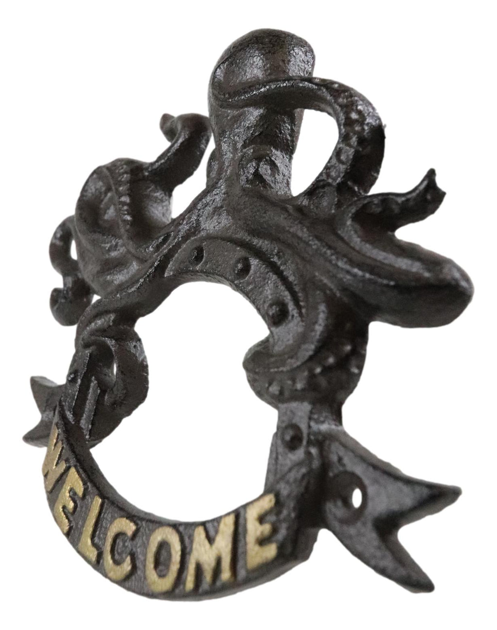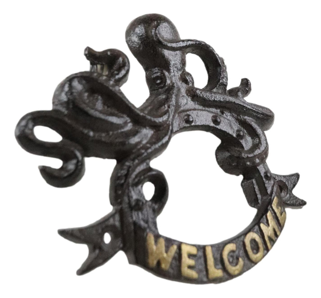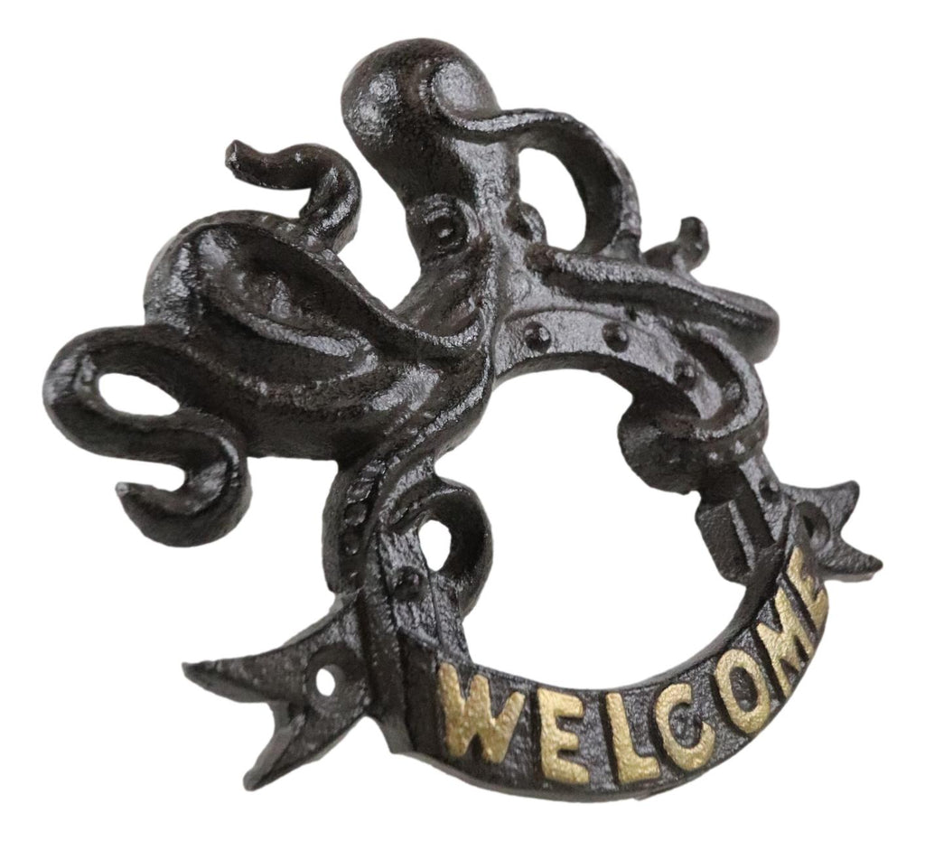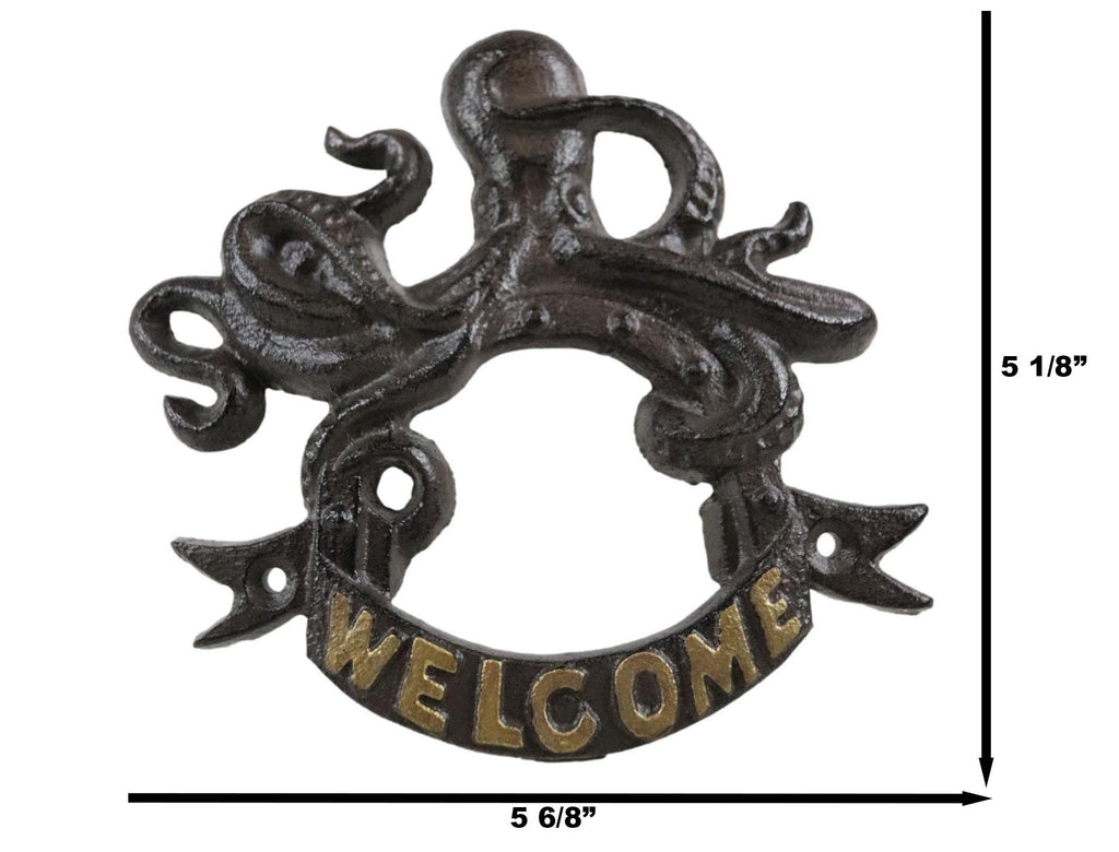• Welcome guests to your coastal retreat with our captivating Cast Iron Octopus Wall Plaque. This enchanting piece adds a touch of maritime magic to any entryway or living space, showcasing the intricate design of an octopus with precision and style. Crafted from durable cast iron, it promises to greet visitors with a warm and enduring message for years to come. Whether you're by the sea or simply adore nautical aesthetics, this octopus welcome sign is the perfect addition to your decor.