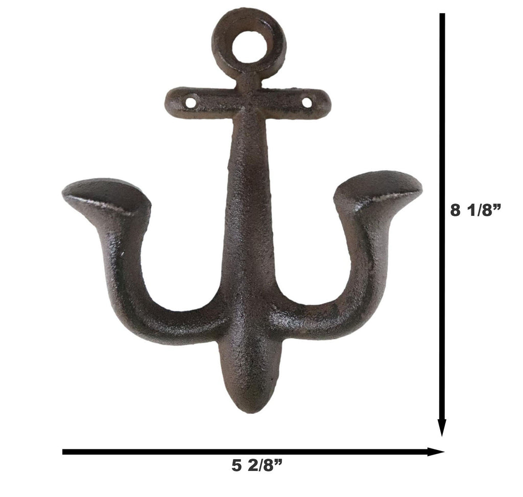 • This Nautical Ship Anchor 2 Pegs Wall Hook is made of cast iron, hand painted and polished individually with rustic bronze finish. Color tone may vary slightly from pictures.
