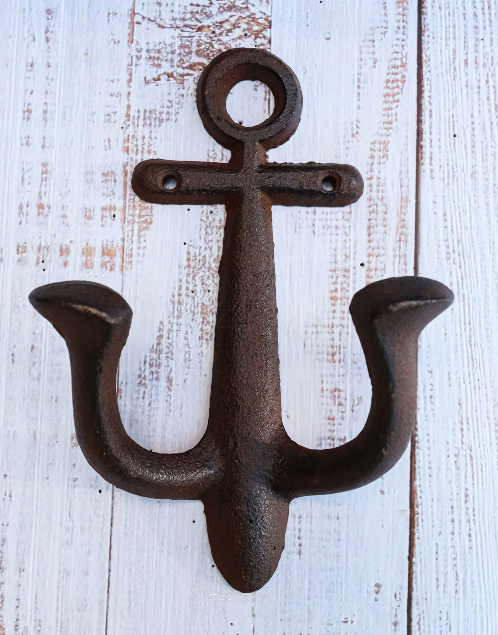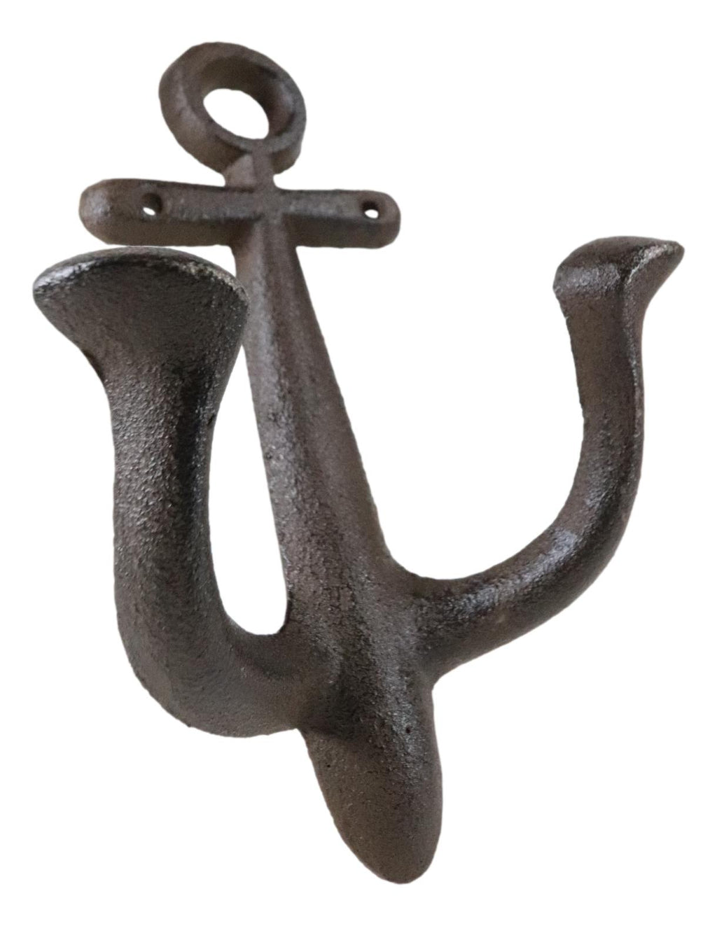 • This Nautical Ship Anchor wall hook is the perfect addition for any nautical themed home by the seas or harbors. Handcrafted from cast iron, this hook allows for easy decorative mounting, ideal for hanging clothes, backpacks and accessories. Display this decorative ship anchor 2 pegs wall hook to add a nautical theme to any room and show those who visit your homey affinity for the nautical sea-faring lifestyle.