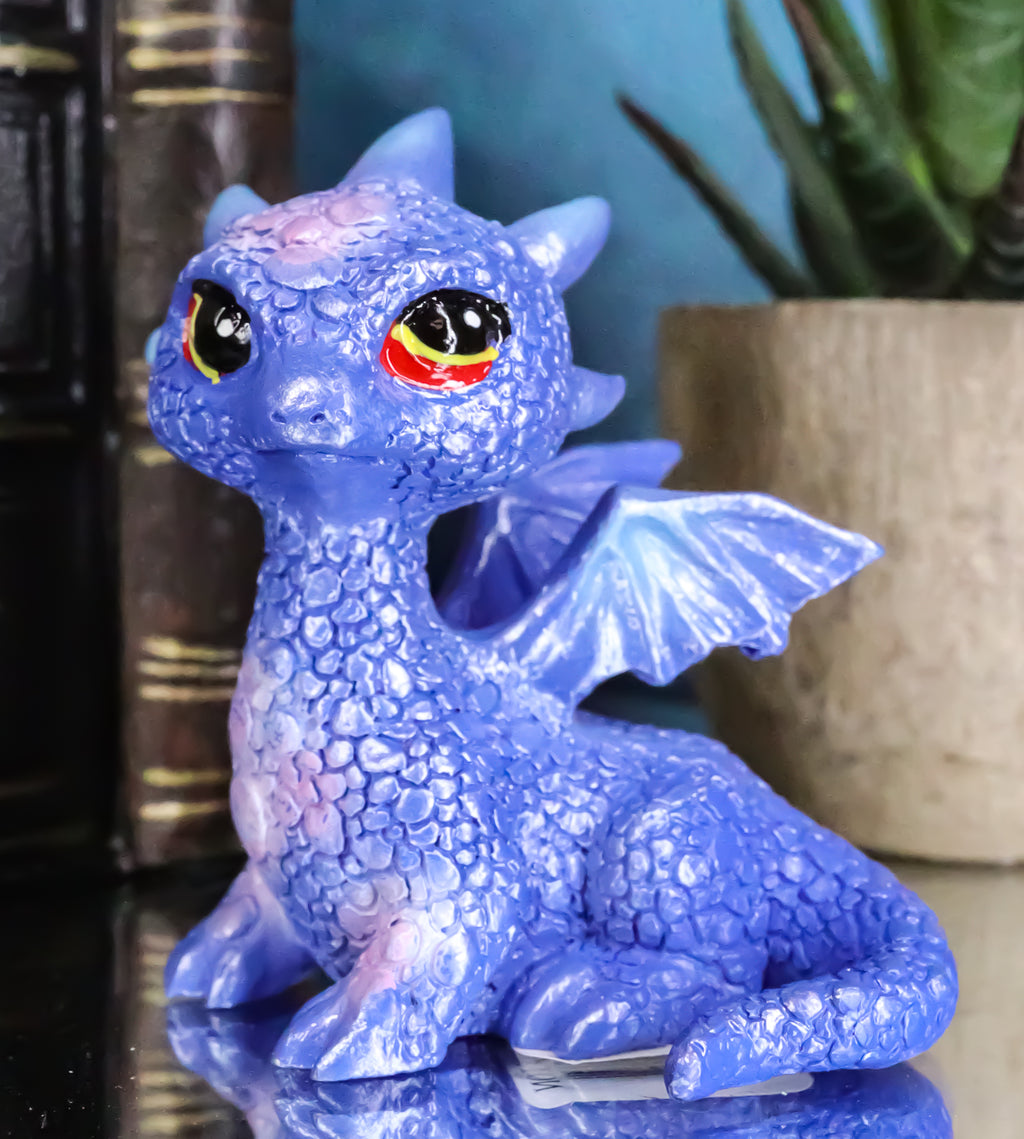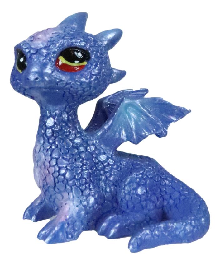 • This Saphir Baby Dragon is made of polyresin, hand painted and polished individually. • This Saphir Baby Dragon measures 2.5" High, 2.25" Wide and 1.75" Deep. It weighs about 2 ounces. • Babies of practically any species are cute, and dragons are no exception to that fact. This Saphir Baby Blue Dragon Statue is proof of that point, as it depicts a youthful dragonling with vivid blue scales that is barely out of its shell. Likely named after the sapphire for its rich blue tone, this dragon statue features fine detailing that makes every scale visible. And its wide colorful eyes and innocent expression only enhance its cuteness and appeal. • Props in photos are not included with the item.