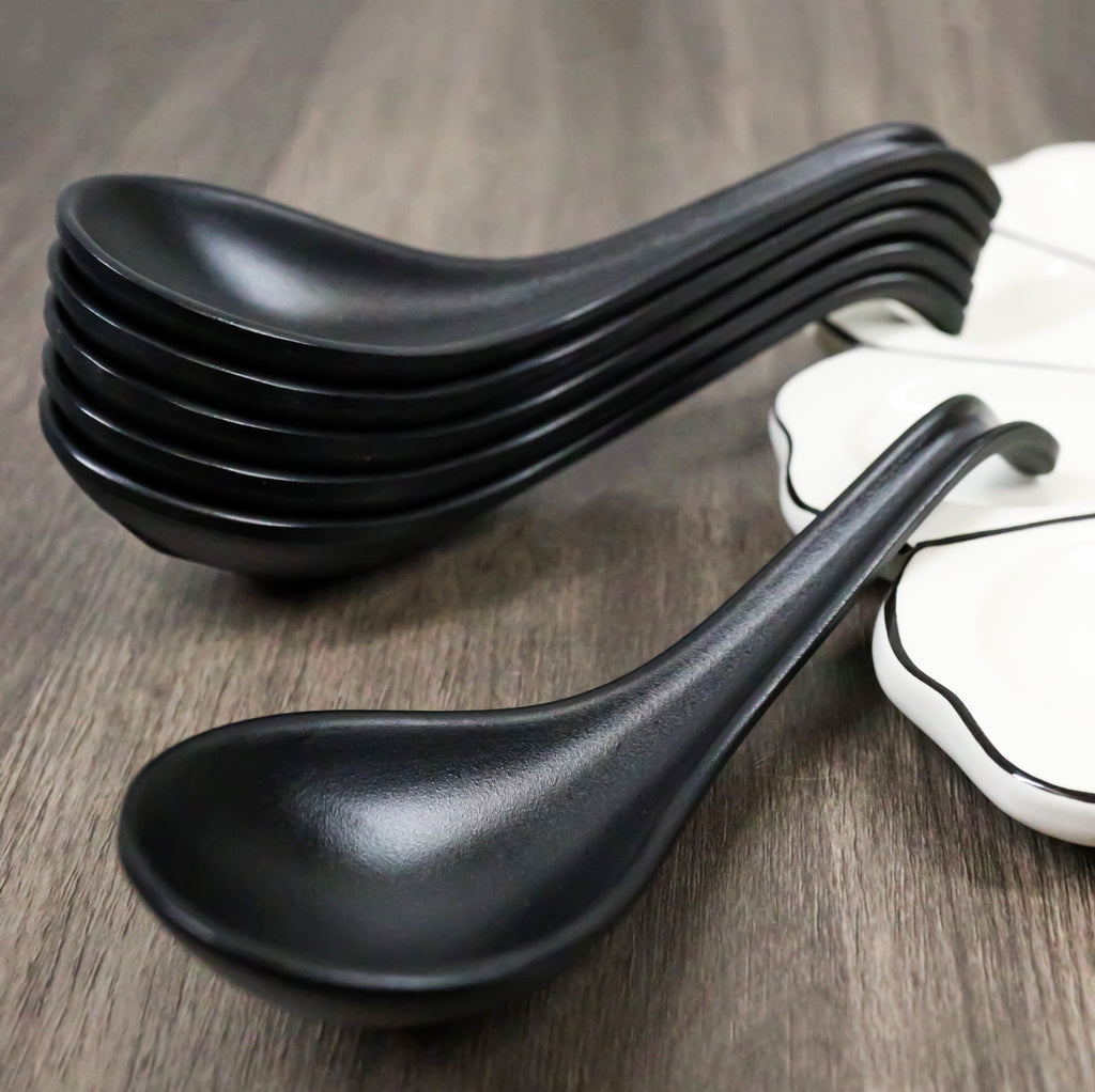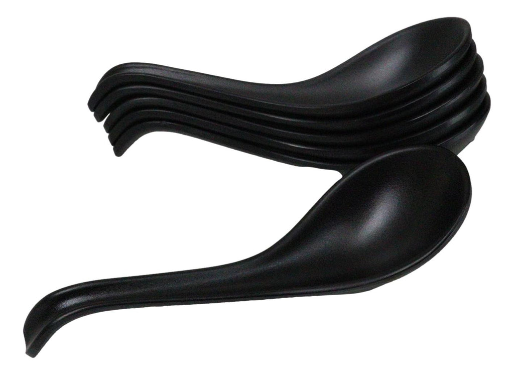• This Melamine Soup Spoon With Ladle Hook Set each measures 2.25"H 1.75"W 5.25"Long. It holds about 1 oz capacity. • These soup spoons are made of high quality melamine in a state of the art factory in China. They are compact/stackable and ergonomic. These restaurant grade melamine spoons are dishwasher safe. • Because they are made of melamine, these spoons are perfect for high-volume restaurants and private parties due to its shatter- and stain-resistant properties. Therefore, these spoons will sustain long-term use while maintaining their glossy color and overall quality. The ladle hook handle is ergonomically designed for comfort and well as to keep the spoon in place at the edge of the bowl/dish. • All melamine products should not be exposed to the microwave due to their material properties. This listing is for a pack of 6 spoons in your color of choice.