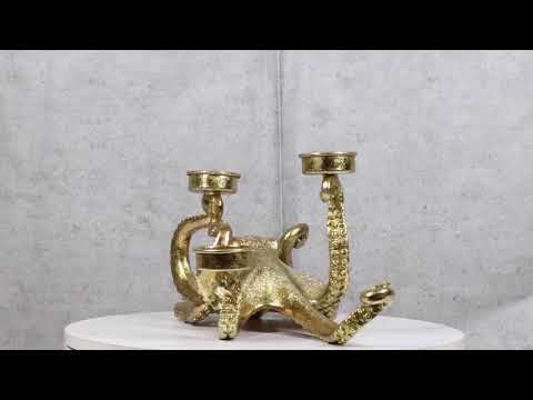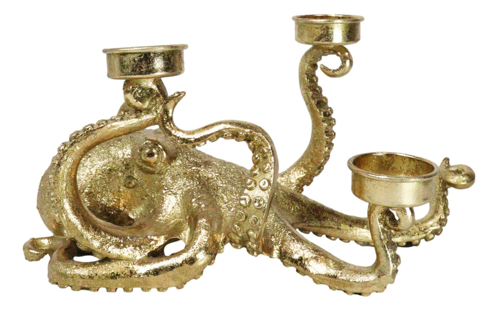 Contemporary Gold Tone Marine Ocean Octopus Tentacles Trio Votive Candle Holder