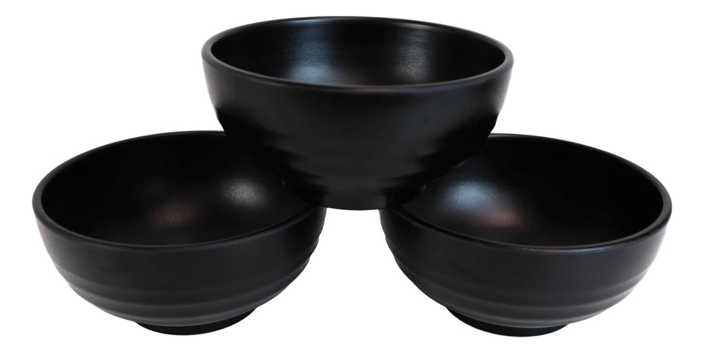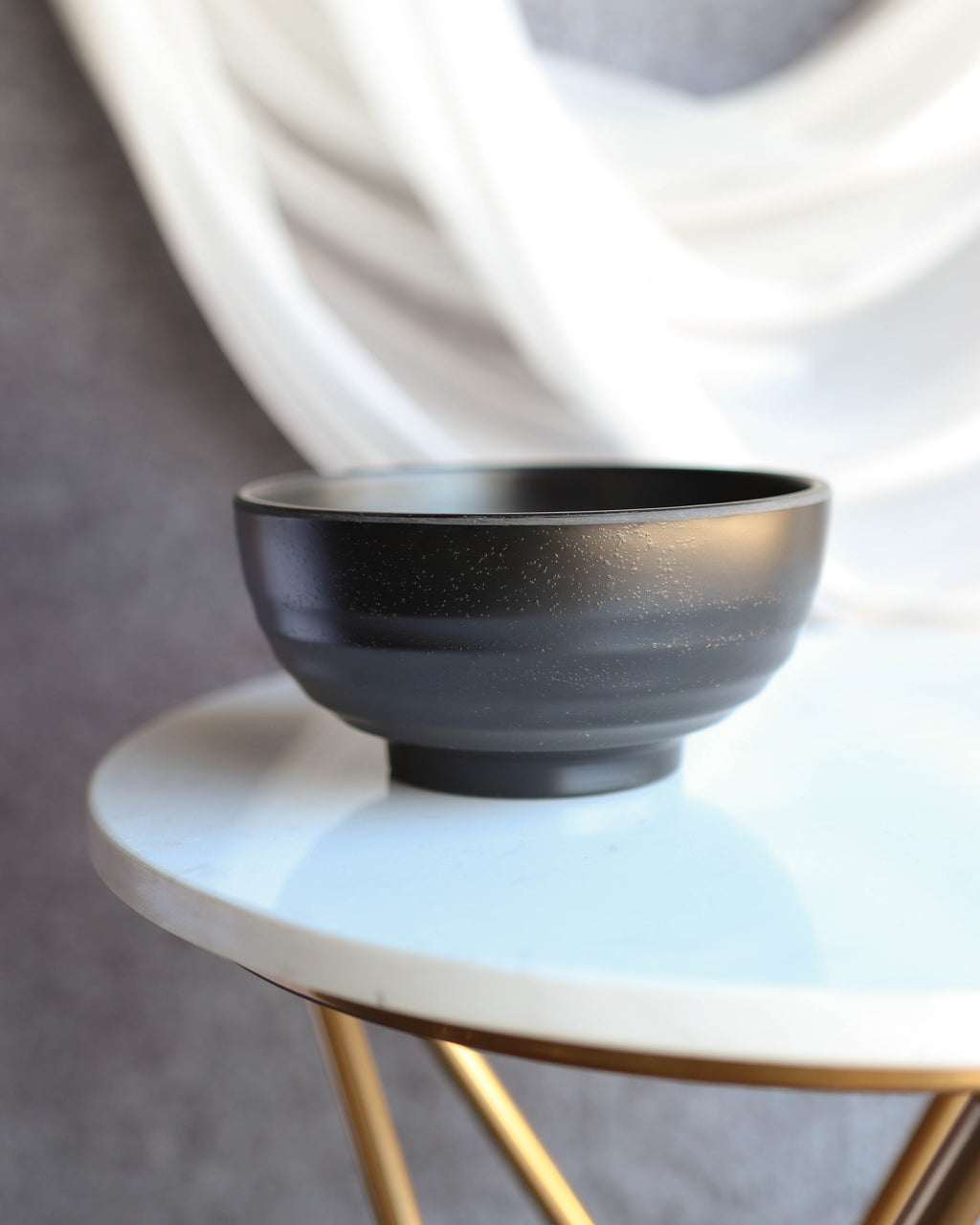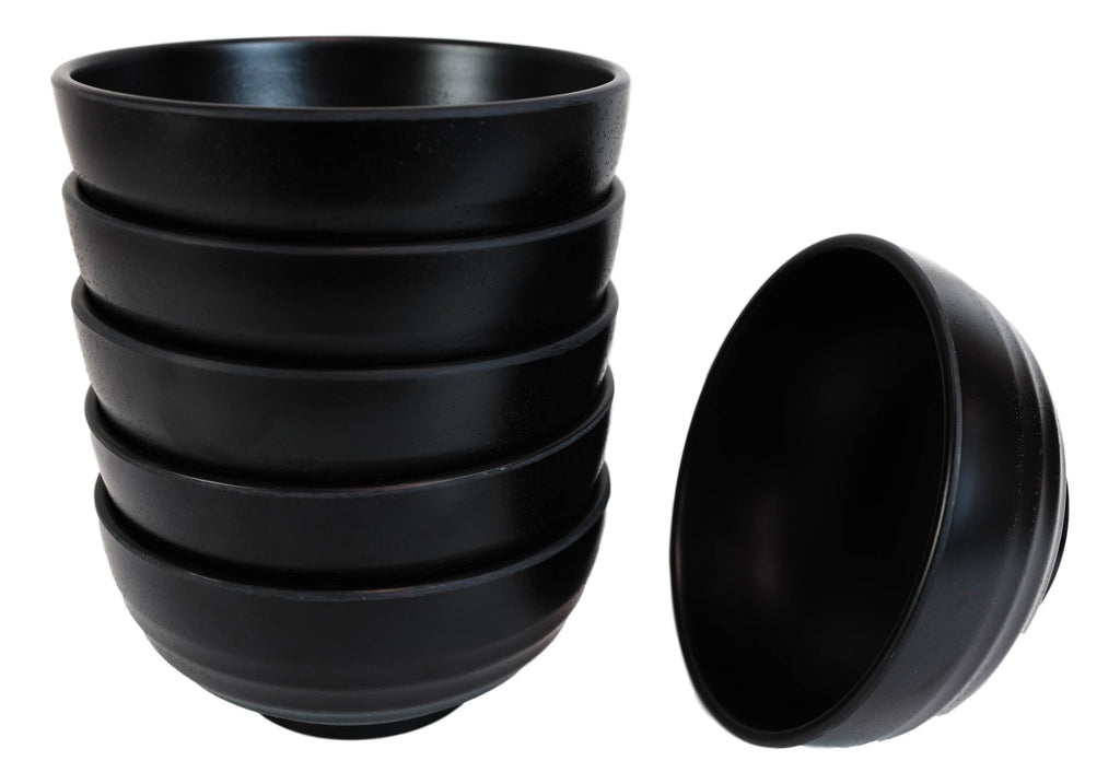 Contemporary Ridged 6.25"D Matte Black Melamine Salad Pasta Soup Bowls Pack Of 6