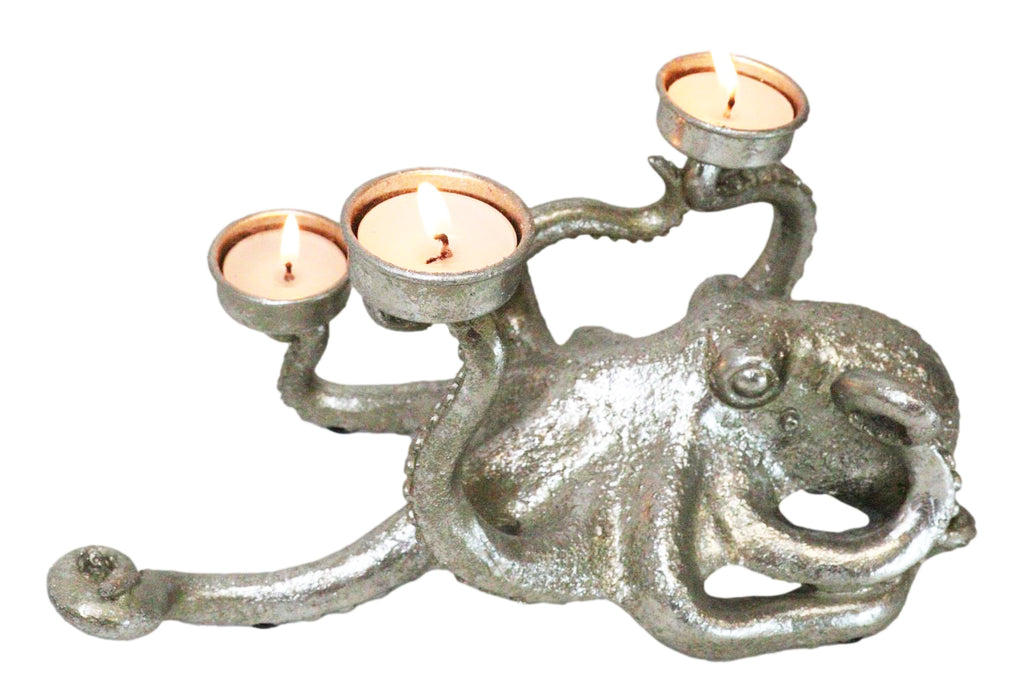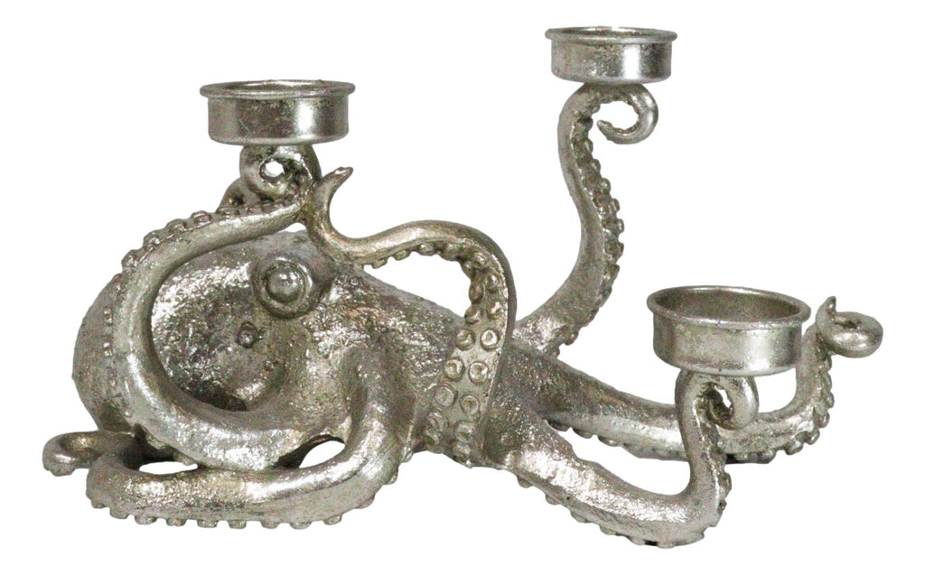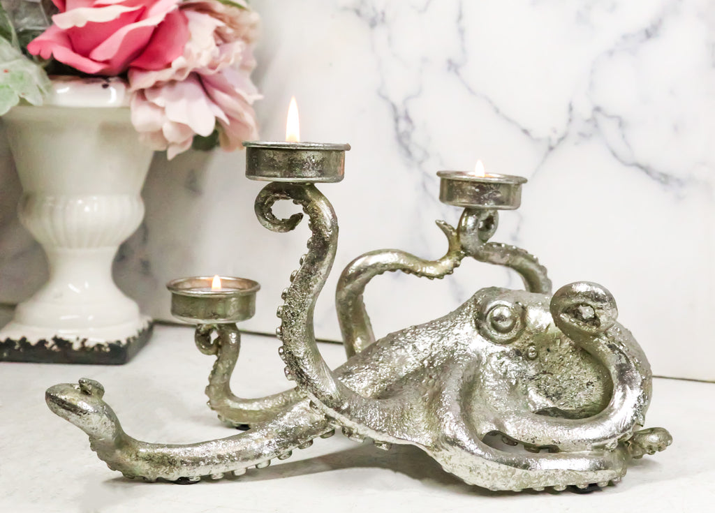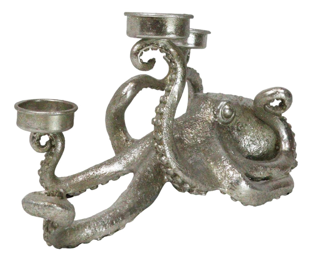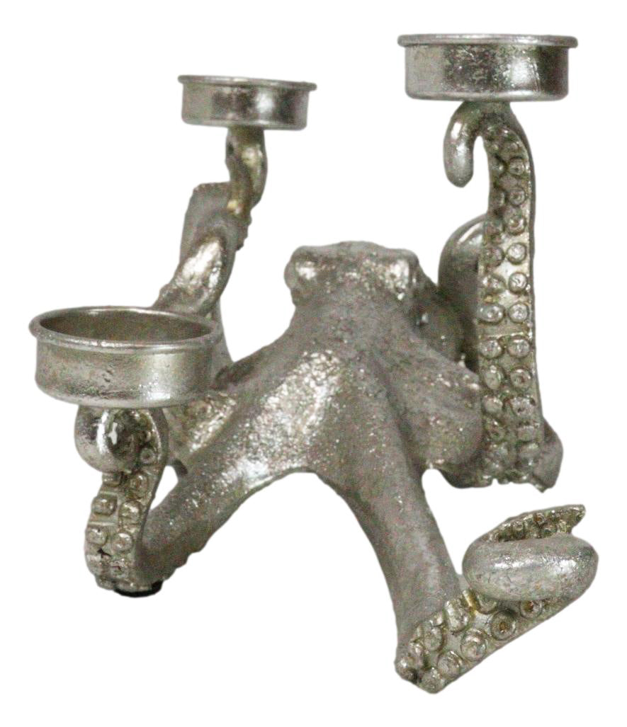 Contemporary Silver Marine Ocean Octopus Tentacles Trio Votive Candle Holder