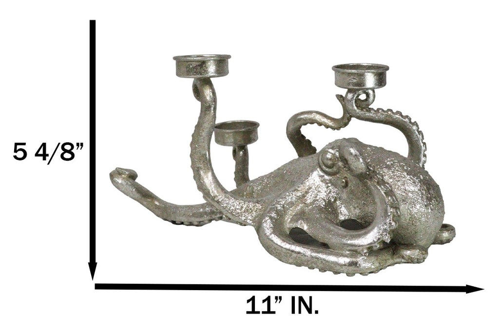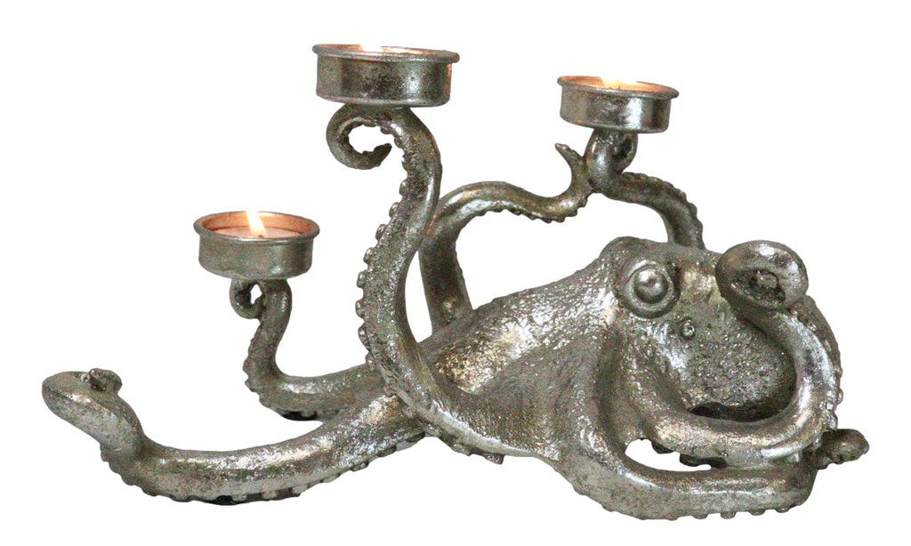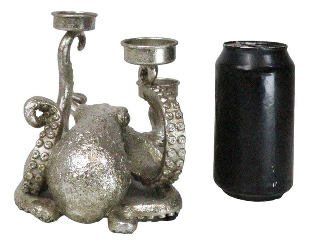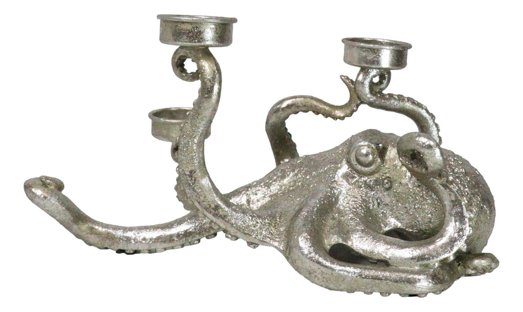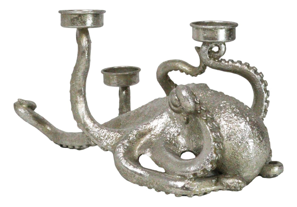 Contemporary Silver Marine Ocean Octopus Tentacles Trio Votive Candle Holder
