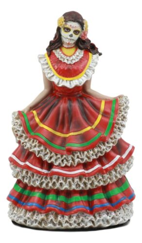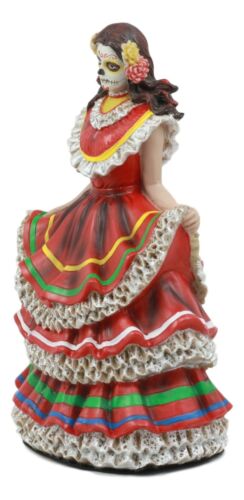 Day Of The Dead Traditional Red Gown Sugar Skull Dancer Statue Vivas Calacas