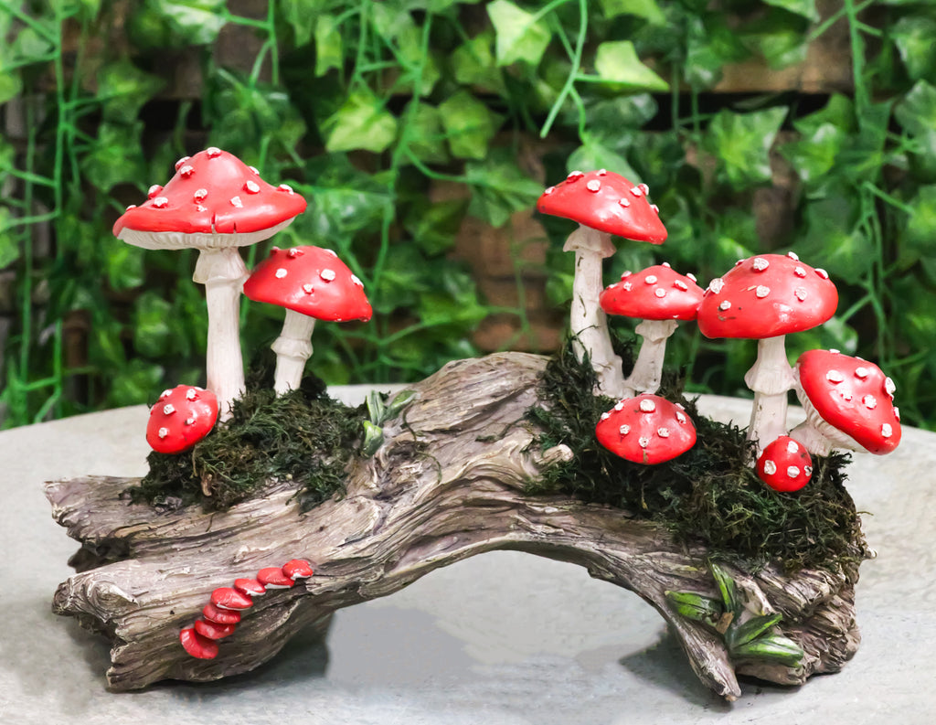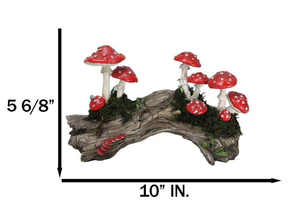 • This Toadstool Mushrooms Family On Tree Log figurine measures 5.75" tall, 10" wide and 3.5" deep approximately. It weighs about 1.25 pounds. • This Toadstool Mushrooms Family On Tree Log figurine is made of premium grade cold cast polyresin, hand painted and polished individually. • All you need is a little imagination and magic to make a perfect fairy garden in your backyard, garden or what have you. You can create a great fairy garden out of many areas and simple things in your home like the side of a tree base, vegetable garden, broken flower pots, galvanized metal tub, back porch, front patio, tree roots, planter boxes that do not get enough sunlight and etc! • Bring a whimsical touch of nature to your space with this Toadstool Mushrooms on Moss-Covered Tree Log Figurine. This enchanting piece features a charming family of toadstool mushrooms, nestled atop a moss-covered tree log, creating a magical woodland scene. The vibrant colors and intricate detailing of each mushroom, combined with the lush, green moss, evoke the serene beauty of a forest floor. Perfect for adding a cozy, earthy vibe to any room. • Soda can placed next to the statue is not included with the listing. It is meant to provide size perspective of the item.
