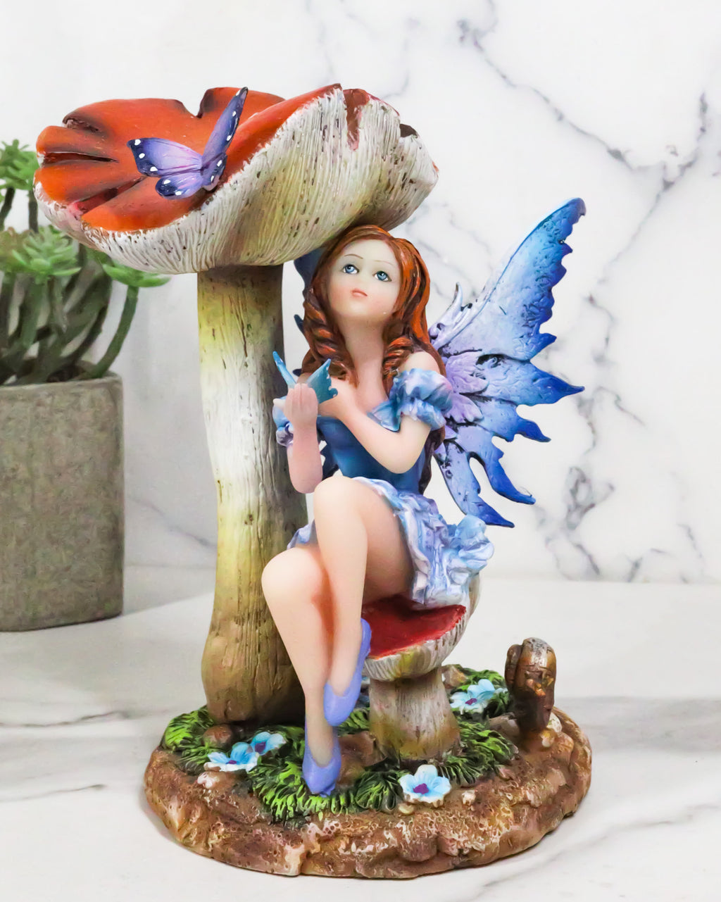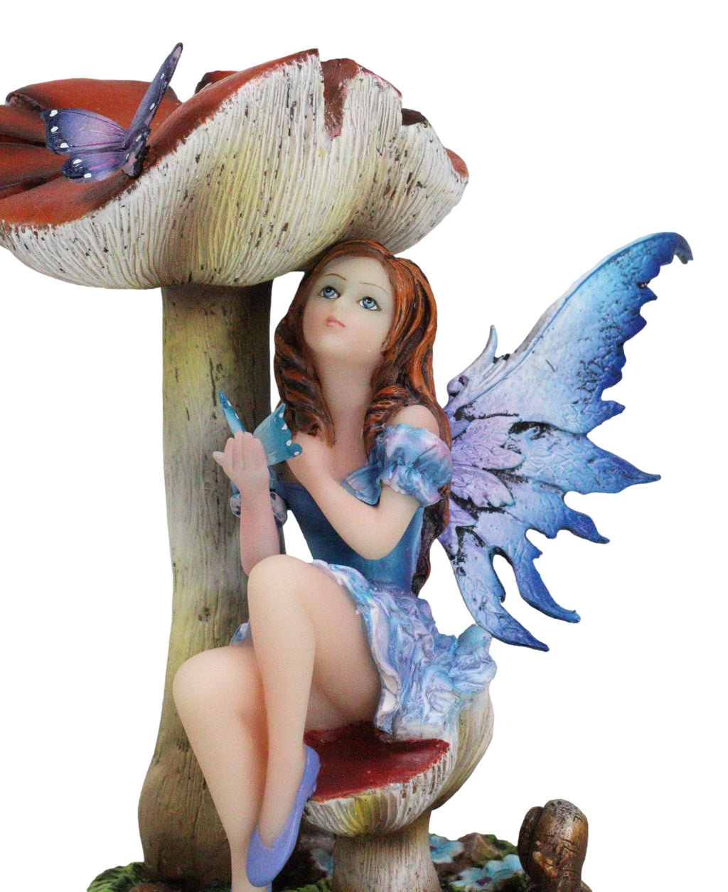 • This Toadstool Mushroom Butterfly Fairy Figurine is made of polyresin, hand painted and polished individually.