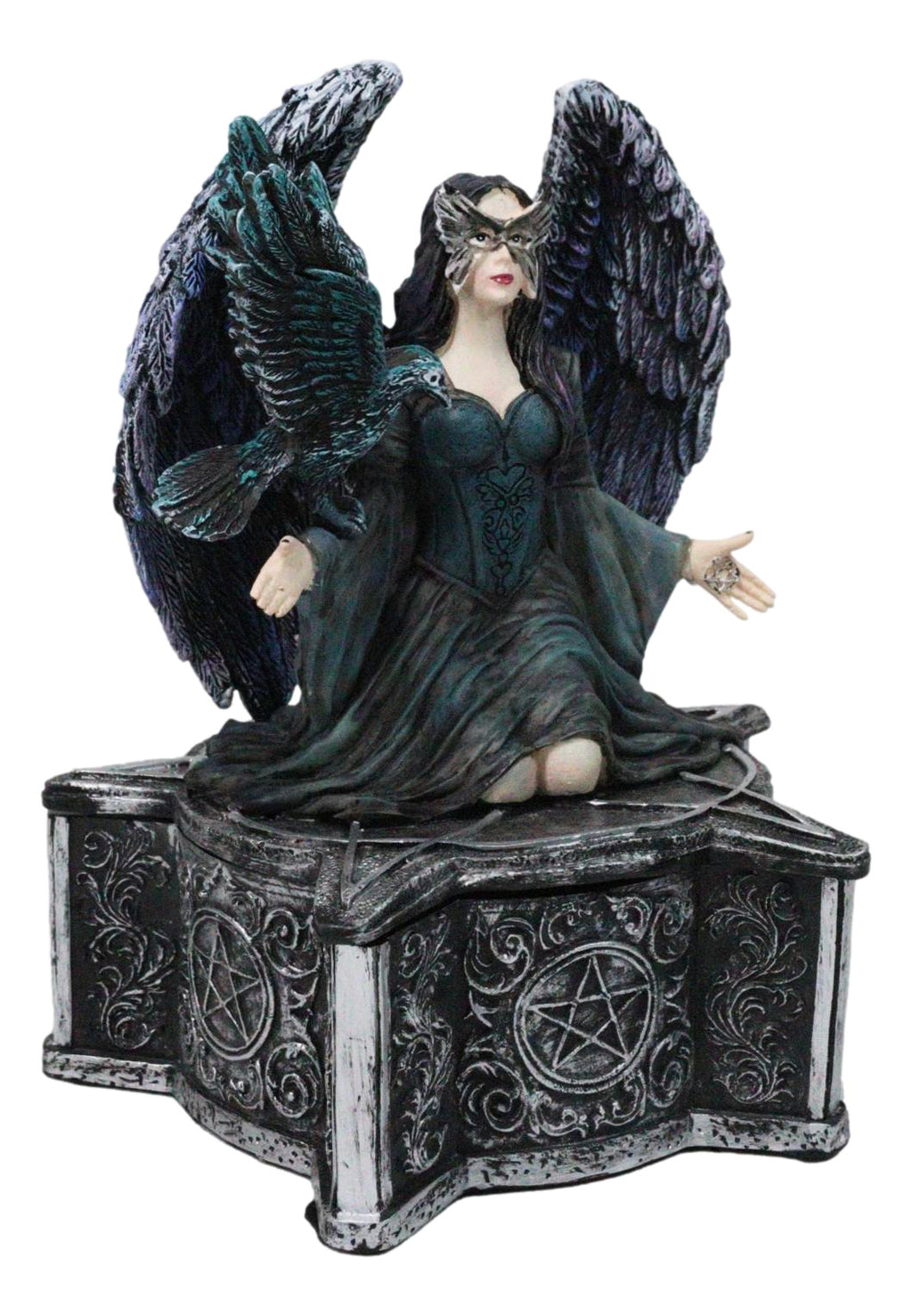 • This Gothic Fairy With Raven Pentagram Box Figurine is approximately 6.25" tall, 5.25" long and 5" deep. It weighs about 1.25 pounds. • This Gothic Fairy With Raven Pentagram Box Figurine is made of designer composite resin, hand painted and polished individually. Color Tone may vary slightly from pictures. • Embrace mystical elegance with this Fairy Queen with Raven Crow Pentagram Decorative Box. Beautifully crafted with intricate details, this enchanting box features a serene fairy queen in meditation, accompanied by a wise raven crow, all set upon a powerful pentagram star. Perfect for storing jewelry, keepsakes, or small treasures, it adds a touch of fantasy, gothic, and spiritual charm to any room.