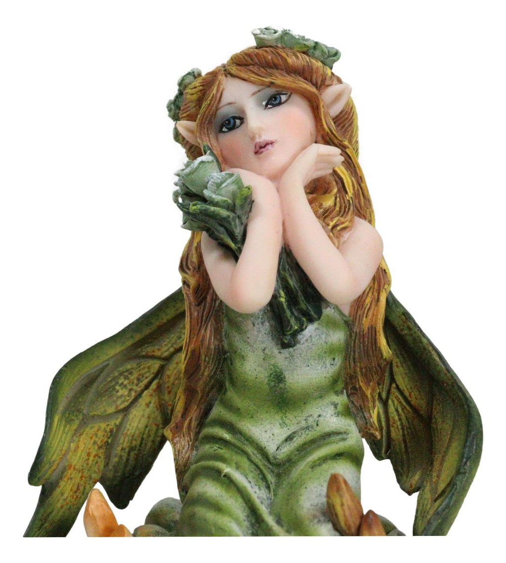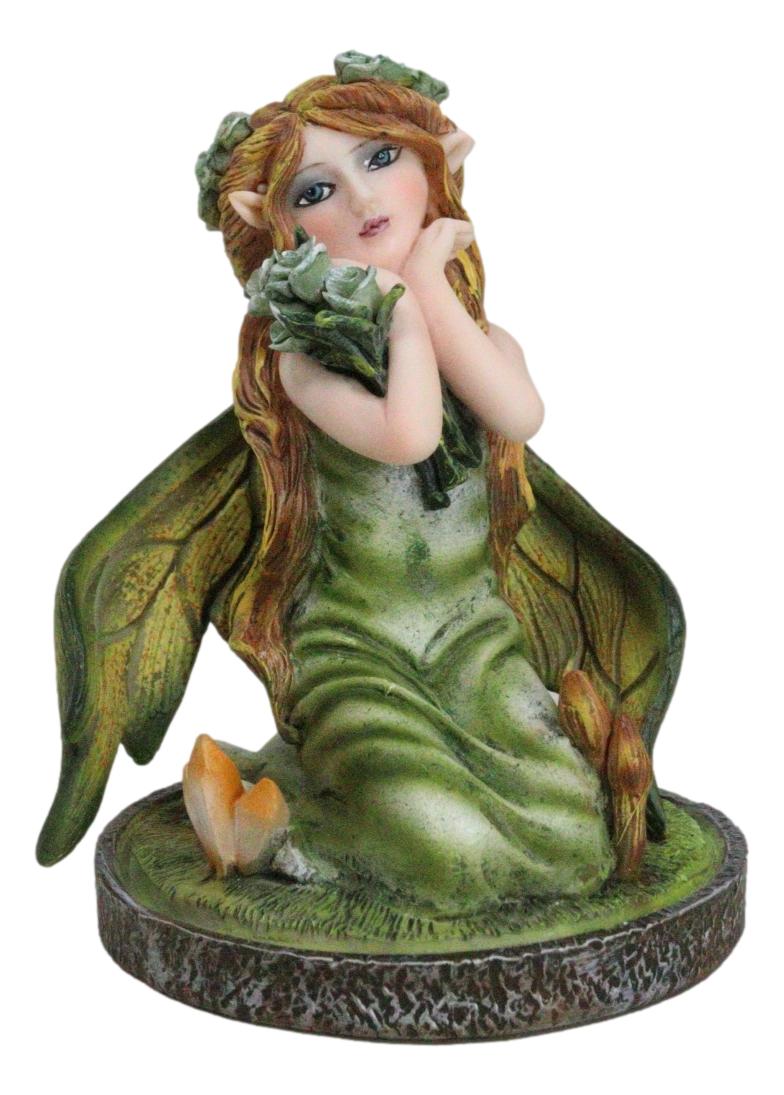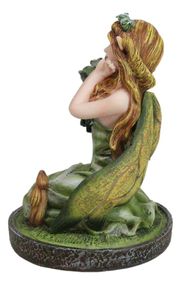 • Embark on a journey into the heart of nature's magic with our Kneeling Ivy Gaia Earth Fairy Figurine, a captivating addition to your collection that brings the spirit of the earth to life. This small figurine features a graceful fairy in a kneeling pose, adorned with intricate ivy motifs, delicately holding a crystal ball. Resting upon a crystalline garden, the details of this figurine evoke the essence of nature's harmony.