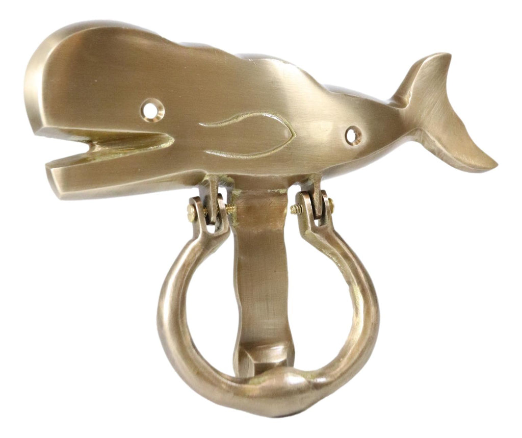 • This Whale Door Knocker is made of brass, hand cast and polished in gold color finish individually. The whale door knocker comes with a built in strike plate to keep your door surface smooth.Create an inviting doorway with this whale door knocker.