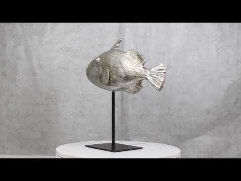 • This Beautiful Marine Wildlife Clown Triggerfish Figurine measures 11.25" long, 11" high and 4" deep approximately. It weighs about 1.75 pounds. • This Beautiful Marine Wildlife Clown Triggerfish Figurine is made of high quality designer polystone resin, individually handpainted and polished in semi lustruous silver finish. The base stand is made of metal. • Bring the vibrant allure of the ocean to your space with the Clown Triggerfish Sculpture. This stunning piece features a lifelike representation of a clown triggerfish, meticulously crafted with a dazzling silver finish. Mounted on a sophisticated museum-quality black pole base stand, it adds a touch of elegance and marine charm to any room. Ideal for marine enthusiasts and art aficionados, this sculpture is a captivating centerpiece for your home or office decor. • Props in photos are not included with the item.