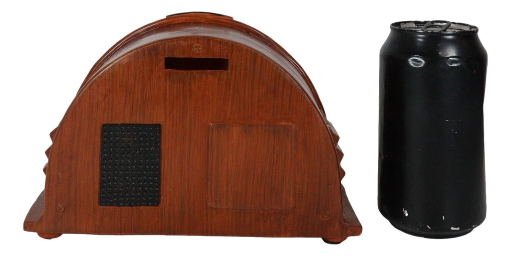 • This Retro Arc Shaped Radio Player Money Bank measures 5" Tall, 7.5" Long and 3.25" Wide approximately. The sculpture weighs about 1 pound.